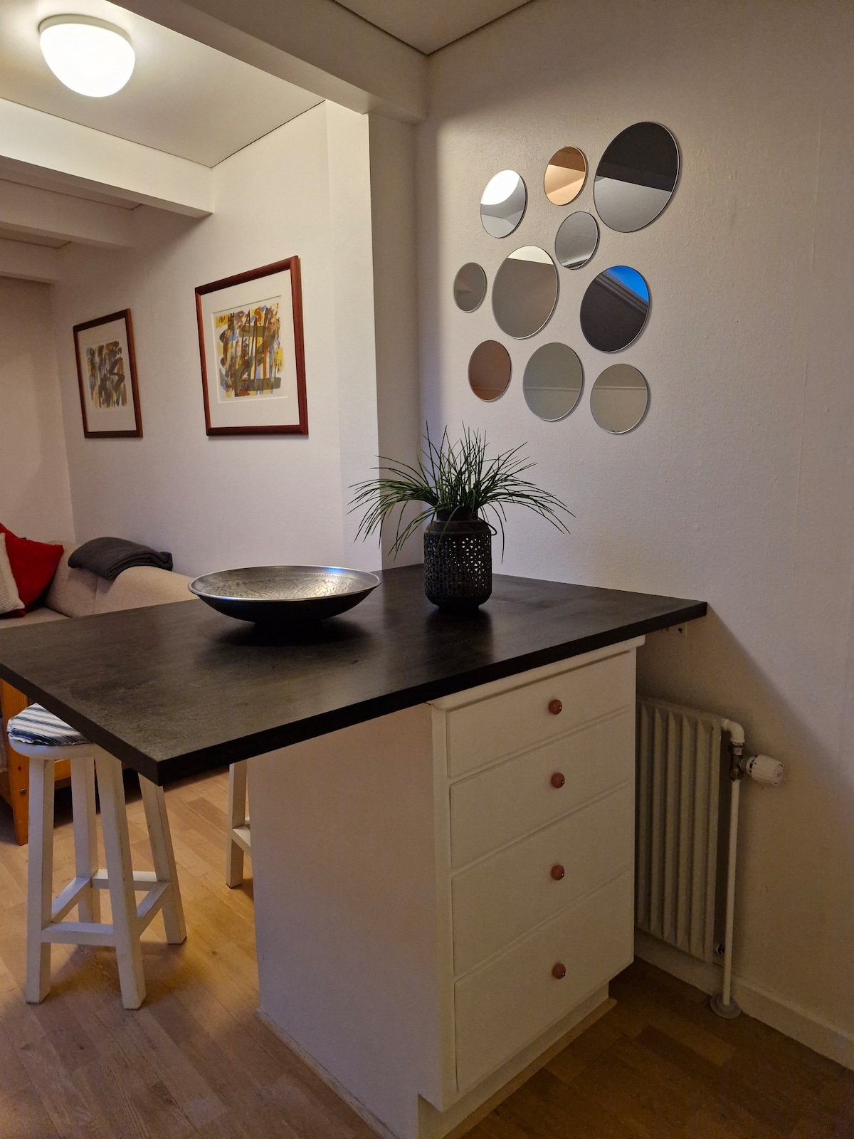 Experience this newly built boathouse located right by the seafront and only 100 m from a grocery store, local bakery/cafe, public svimming/spa hall and public busses. The boathouse is 50 m2 + a loft equipped with all modern conveniences. There are two bedrooms, a bathroom and the main area with a fully equipped kitchen, dining area, and a sofa area with a TV that has access to several channels and wifi.