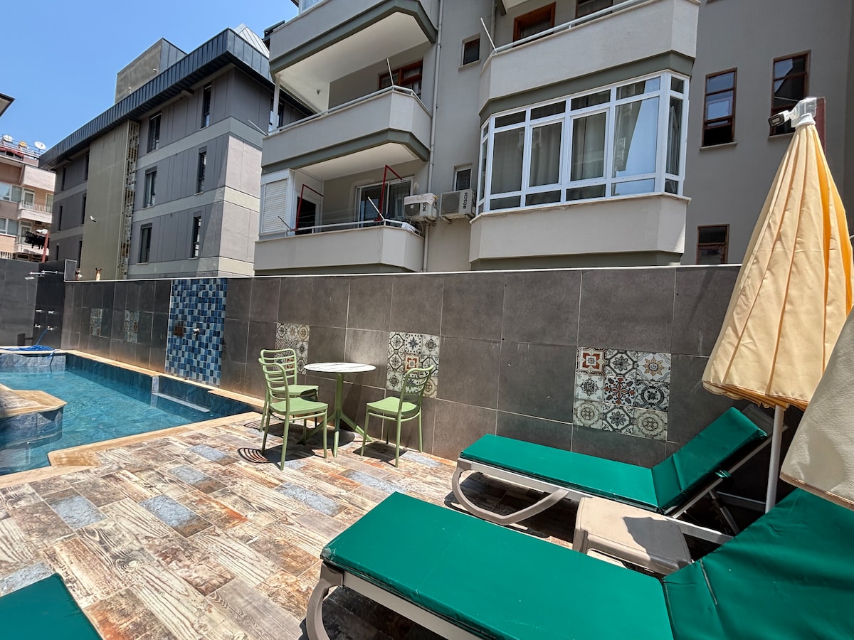 Beachfront Apartment with Sea View & Pool Welcome to your perfect getaway in Alanya! This stylish and comfortable apartment is located right on the first coastline, just steps from the beach. Enjoy a breathtaking sea view from bedroom. The Apartment Features: Spacious and modern living area with full kitchen Large outdoor swimming pool on-site Balcony with seating area Fast Wi-Fi, air conditioning, and washing machine