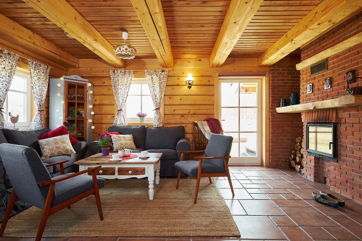 Nous offrons un hébergement dans des MAISONS EN BOIS de 3 ans, chacune avec un maximum de 8 personnes. Situé à côté d'une forêt , sur une colline ensoleillée au pied de la rivière calme. Le rez-de-chaussée est un salon avec un canapé-lit et une kitchenette et une salle de bains entièrement équipées. À l'étage, il y a 2 chambres, chacune avec des lits doubles et simples. Les logements sont chauffés par des cheminées ou des radiateurs électriques.
