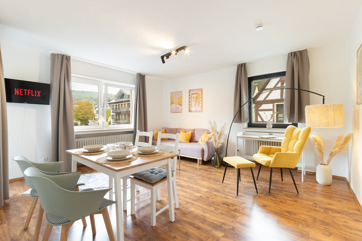 3 min à pied de la gare. Bush à la maison. 5 minutes jusqu'à la zone piétonne. 30 minutes en voiture du légendaire Nürburgring. Coblence offre une vie nocturne colorée et est également à moins de 30 minutes en voiture. (Bus et train partent directement de Mayen) L'appartement est situé au centre mais toujours calme Vous pouvez vous attendre à une atmosphère familière et simple dans une maison individuelle. Idéal pour les couples, les aventuriers voyageant seuls, les voyageurs d'affaires, les familles (avec enfants).