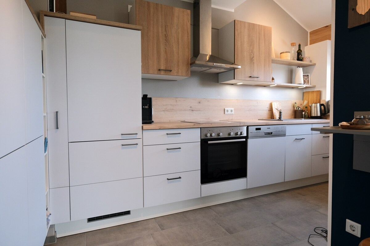 NIKA Loft est un appartement mansardé de 70 m² élégamment meublé dans le centre-ville de Rosenheim. Lors de la rénovation de base il y a 5 ans, pratiquement tout, à l'exception de l'ancienne construction de toit qui donne à l'appartement beaucoup de charme et de chaleur, a été rénové. Les avantages de l'appartement sont l'emplacement calme tout en étant proche du centre et de la gare (10 min à pied), l'espace de vie généreux, 1 parking privé + parking public devant la porte et la proximité de la nature avec le site de l'exposition horticole.
