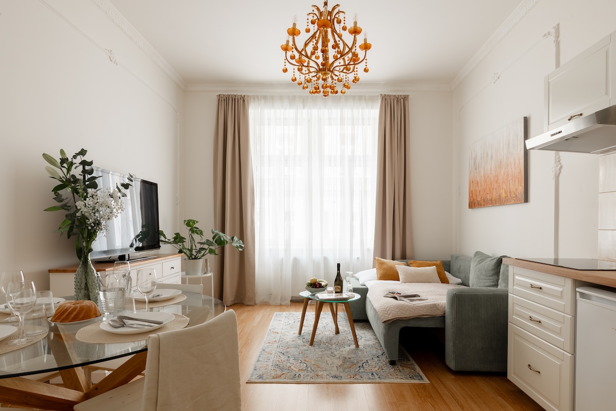 Appartement spacieux et entièrement équipé 1+1 dans le centre de Karlovy Vary. L’appartement est situé au 4e étage d’un bâtiment historique, il n’y a donc pas d’ascenseur. À proximité se trouvent le musée Becher, les sources thermales, les maisons thermales, un grand nombre de restaurants et de magasins. Des possibilités de stationnement abordables sont à environ 5-7 minutes à pied de l’appartement. Gare routière et ferroviaire à 5 minutes de l’appartement.