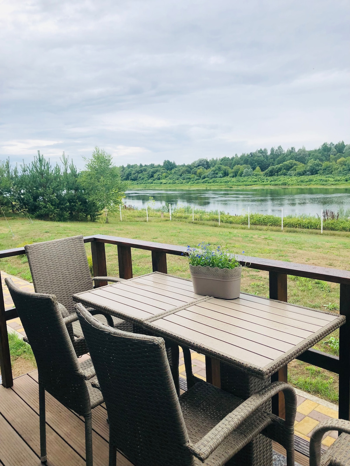 Notre confortable maison d'un étage se compose d'un studio de cuisine avec cheminée,d'une petite chambre avec un canapé-lit et d'une chambre. Il y a un sauna(payé séparément, le coût est de 25 euros. Il y a des places de stationnement sur le territoire. La maison est située à côté de la rivière Daugava sur le territoire du parc forestier. Le centre-ville est à 7 km