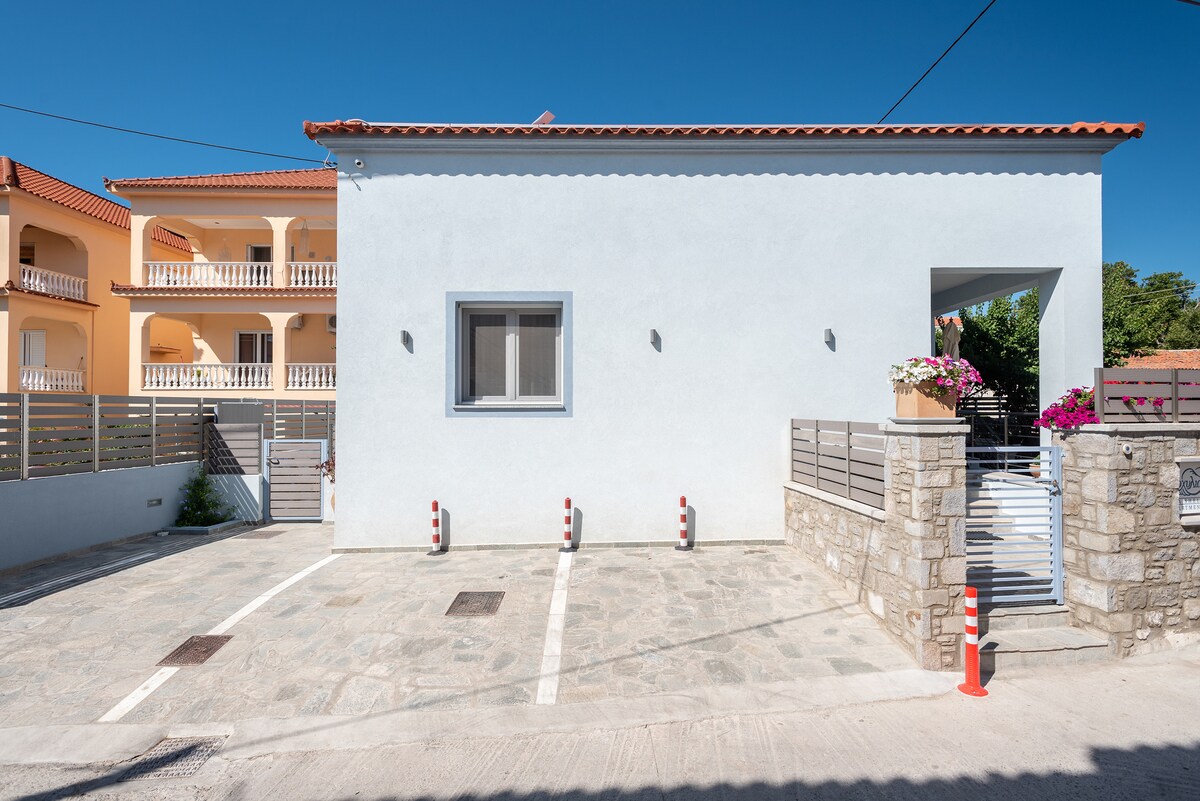 Maison traditionnelle de l'île récemment rénovée, située au centre de la ville portuaire, à seulement 2 minutes à pied du vieux port et à 1 minute à pied de la rue du marché traditionnel, de la plage de Romeikos-gialos et des lieux de vie nocturne. Profitez de votre séjour dans une maison spacieuse et élégante.