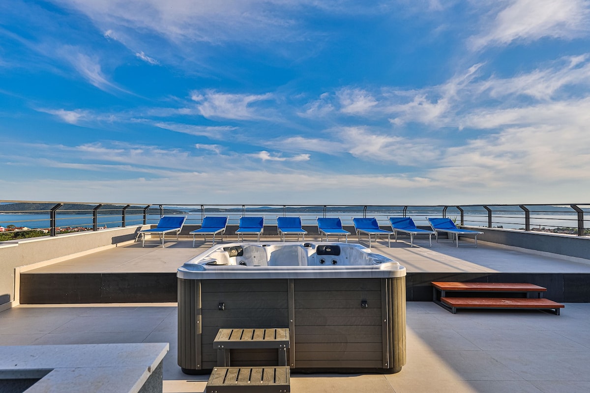 La potion magique pour votre âme, votre esprit et votre corps. L'élixir de la vie. C'est comme ça que vous vous sentirez dans notre logement. L'ensemble du logement est réservé à un seul couple. On a l'impression d'être complètement loin de tout, des problèmes, du stress et des gens. Piscine extérieure à débordement et vue panoramique sur la mer à la baie de Marina et les îles dont vous pouvez profiter en toute intimité vous donnera un plaisir inoubliable. Notre petite maison a tout ce dont vous avez besoin pour vos vacances, et elle ravira votre âme et votre cœur.