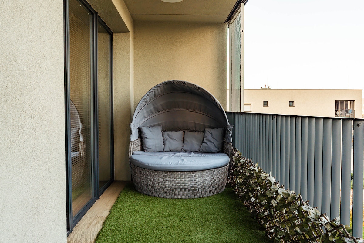 🌿 Cozy Studio in Rezidencia Albelli Enjoy a peaceful stay in this modern STUDIO apartment in the quiet Rezidencia Albelli complex. It features brand-new furnishings, a comfortable queen-size bed (160×200 cm) 🛏️, and air conditioning ❄️. Relax on the balcony with outdoor sofa, enjoy free parking, a private garden, and an on-site grocery store 🛒. The main street is just a 12-minute walk away. For extra comfort, the apartment also includes blinds and a mosquito net ☀️🦟.