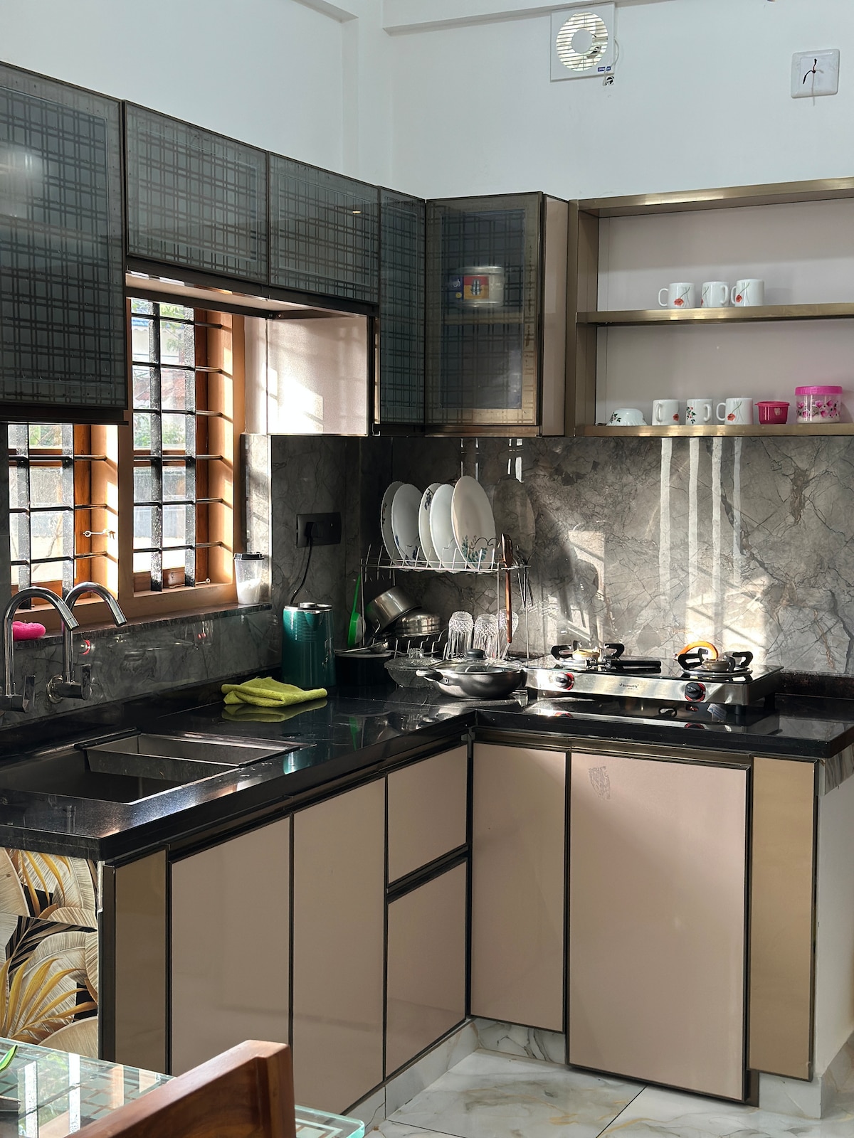 Luxueux appartement de 3 chambres au cœur de Kottayam, à 1 km de la gare, à 100 m de Collectorate et à proximité de l'église de Lourde. Toutes les commodités de base disponibles, y compris une cuisine entièrement meublée avec réfrigérateur, four à micro-ondes, lave-linge, filtre à eau RO, cuisinière à gaz, ustensiles et couverts. Les autres équipements comprennent 2 balcons avec une belle vue, une connexion wifi illimitée gratuite, 2 places de parking gratuites. À côté d'un parc paisible. Sécurité 24 h/24 avec eau et électricité ininterrompues.
