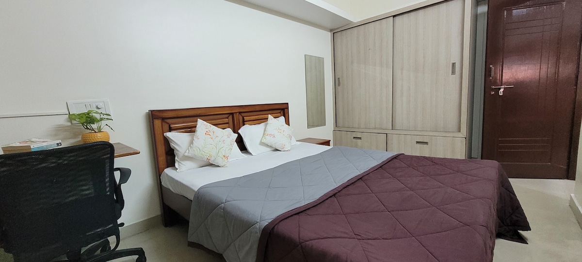 Nestled in the heart of Whitefield, surrounded by lush greenery, our premium 1 BHK apartments are meticulously designed to offer high-quality stay experience and extreme comfort. We have used wakefit 10" memory foam mattresses in bed room and amoeba sofa cum bed in the hall, to offer ultimate sleep quality and back support. We designed our kitchen spaces with modern kitchen utensils - including mini bar set. Other amenities include 100 Mbps WIFI, proximity to the Metro station, and IT hubs.