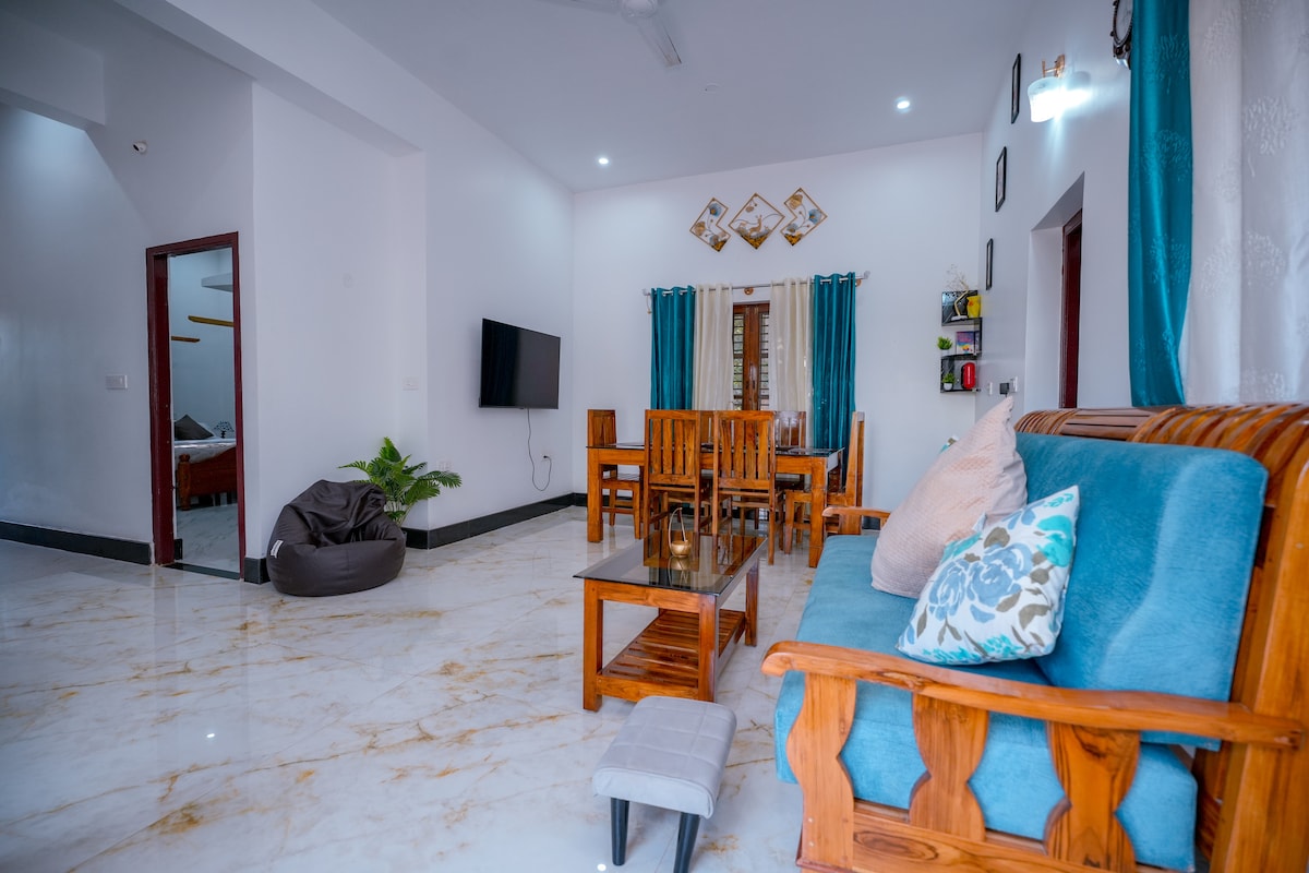 Ce logement paisible offre un séjour détente pour toute la famille, avec 2 salles de bain, une cuisine équipée avec des ustensiles et un parking spacieux. Règlement intérieur 1. INTERDIT de boire de l'alcool, de fumer à l'intérieur et les couples non mariés. 2. Une pièce d'identité valide avec photo de tous les membres DOIT être partagée avant l'arrivée. 3. La maison est réservée aux citoyens indiens (titulaires d'un passeport indien) conformément à la règle définie par les autorités locales. 4. Les voyageurs DOIVENT nettoyer les ustensiles de cuisine utilisés. 5. ₹200/nuit par voyageur de plus de 6 ans (5 ans et plus).