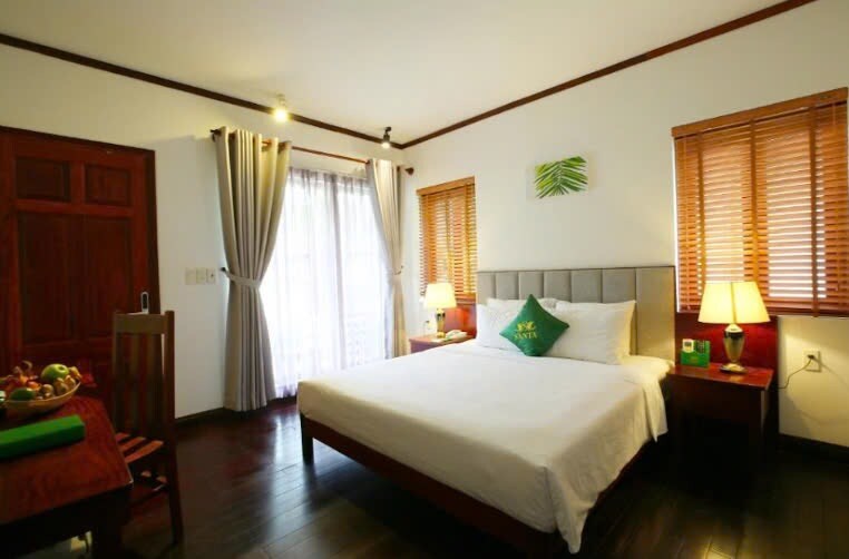 Notre magnifique complexe hôtelier avec grande piscine et entouré d'arbres et la nature paisible rendra vos vacances inoubliables. - 20 % DE RÉDUCTION pour nos 3 premières réservations. - petit déjeuner buffet gratuit + transfert aéroport + location de moto d'une journée - Transport gratuit vers la plage de São. - Excellent emplacement : à 5 minutes de Long Beach et du ruisseau Suoi Tranh. - Chambre spacieuse avec cuisine, réfrigérateur et vue imprenable sur le coucher du soleil. - Nous offrons toutes les meilleures visites et activités de Phu Quoc : saut d'île, plongée, voiture avec chauffeur, ...
