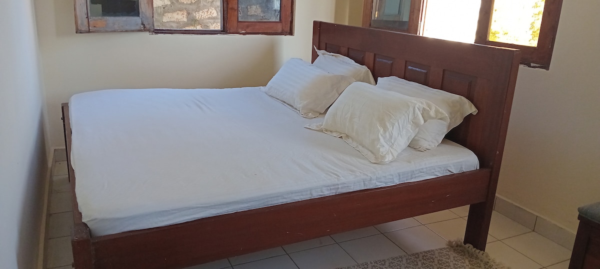 Bienvenue dans votre havre de paix à Almond Ridge, niché dans le quartier de Kinondo à Diani. Cette spacieuse villa de trois chambres (deux avec salle de bain) allie luxe moderne et cadre naturel. Profitez d'un confort élégant avec une connexion Wi-Fi gratuite, un parking privé, un lave-linge et une alimentation de secours pour votre tranquillité d'esprit. Chaque chambre est soigneusement conçue pour assurer des nuits reposantes après une journée d'aventure.