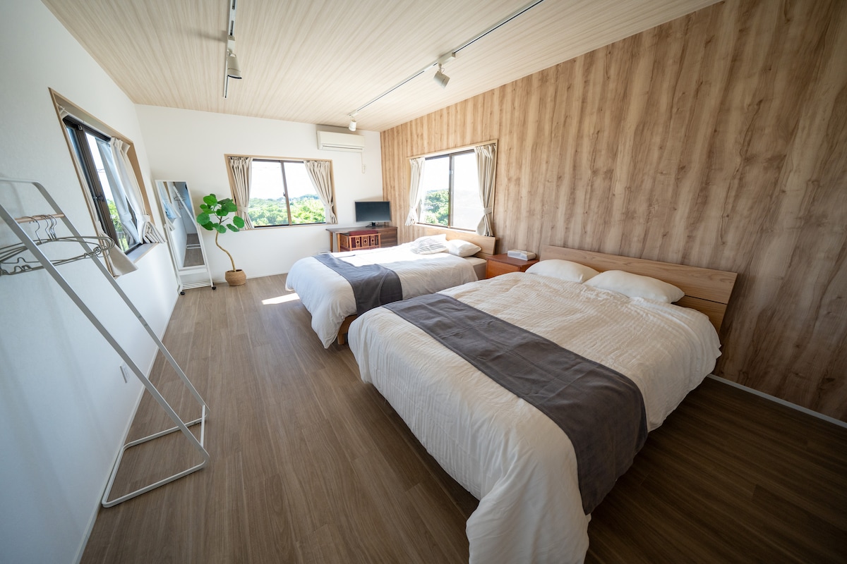 Room Type When I opened the bedroom window, I saw the cobalt blue sea in front of me. Very simple and luxurious hut type that stands as if surrounded by forest. It is a perfect location for enjoying your free time and the nature of Okinawa, reading on the terrace in the forest, swimming in the sea, drinking coffee while listening to the sound of waves at the adjacent cafe, etc. ☆Breakfast included at a cafe with a sea view ☆Free electric bicycle rentals ☆Free car transfers within Nanjo City.