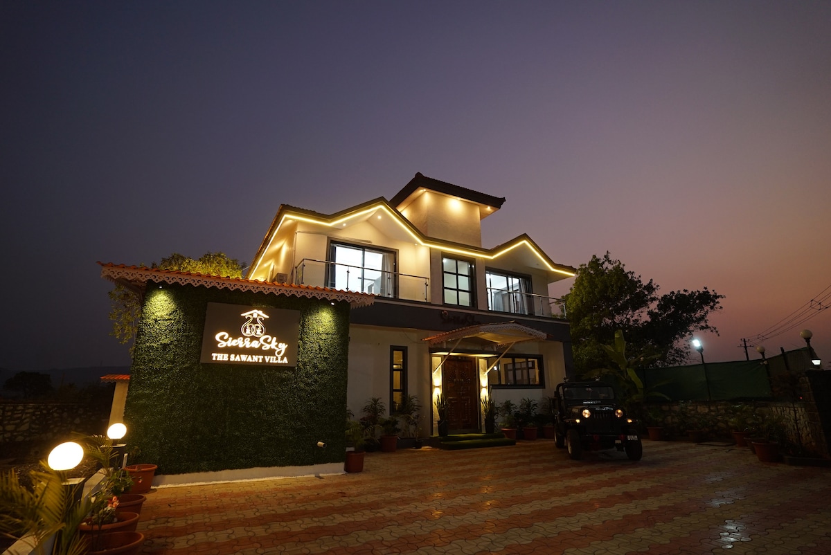 « Villa Elsewhere » est une villa luxueuse, belle, avec piscine privée, à seulement 60-90 minutes en voiture de Mumbai. Entouré de vues verdoyantes sur les champs, les collines et les sons de la nature. La villa dispose de 3 chambres climatisées avec salle de bains, d'un grand salon climatisé qui s'ouvre sur une piscine privée et d'une grande terrasse avec un bar. La cuisine est entièrement équipée et un chef peut y préparer de délicieux repas (*frais supplémentaires). Il accepte les animaux de compagnie (*frais supplémentaires). RÉSERVEZ pour vous détendre dans une ambiance calme et paisible, pour une réunion ou pour accueillir des voyageurs dans le meilleur des cas !