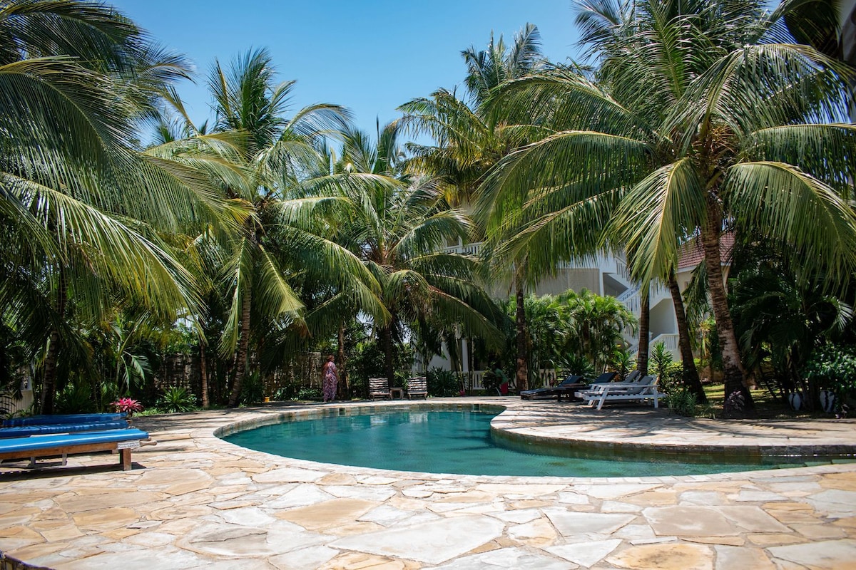 Maison swahili : villa 2 chambres à Diani (piscine et jardin)