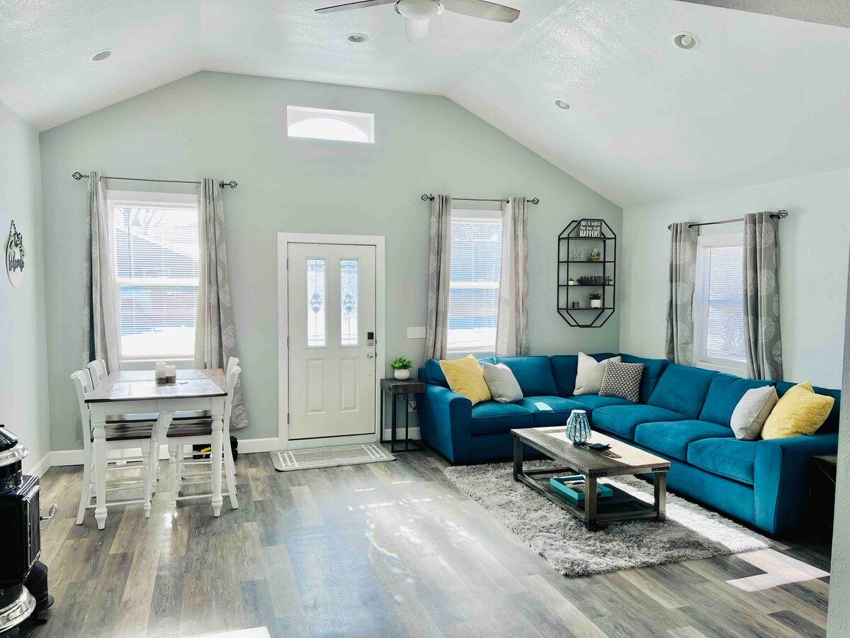 Studio au premier étage avec lit King Size et canapé-lit complet. Ce logement dispose d'appareils électroménagers en acier inoxydable, de comptoirs en quartz, d'un micro-ondes, d'une cafetière Keurig, d'un fer à repasser, d'un lave-linge/sèche-linge et d'un parking sur place. Idéalement situé par rapport au centre-ville de La Grande, à l'Université de l'Est de l'Oregon et à l'hôpital Grande Ronde.
