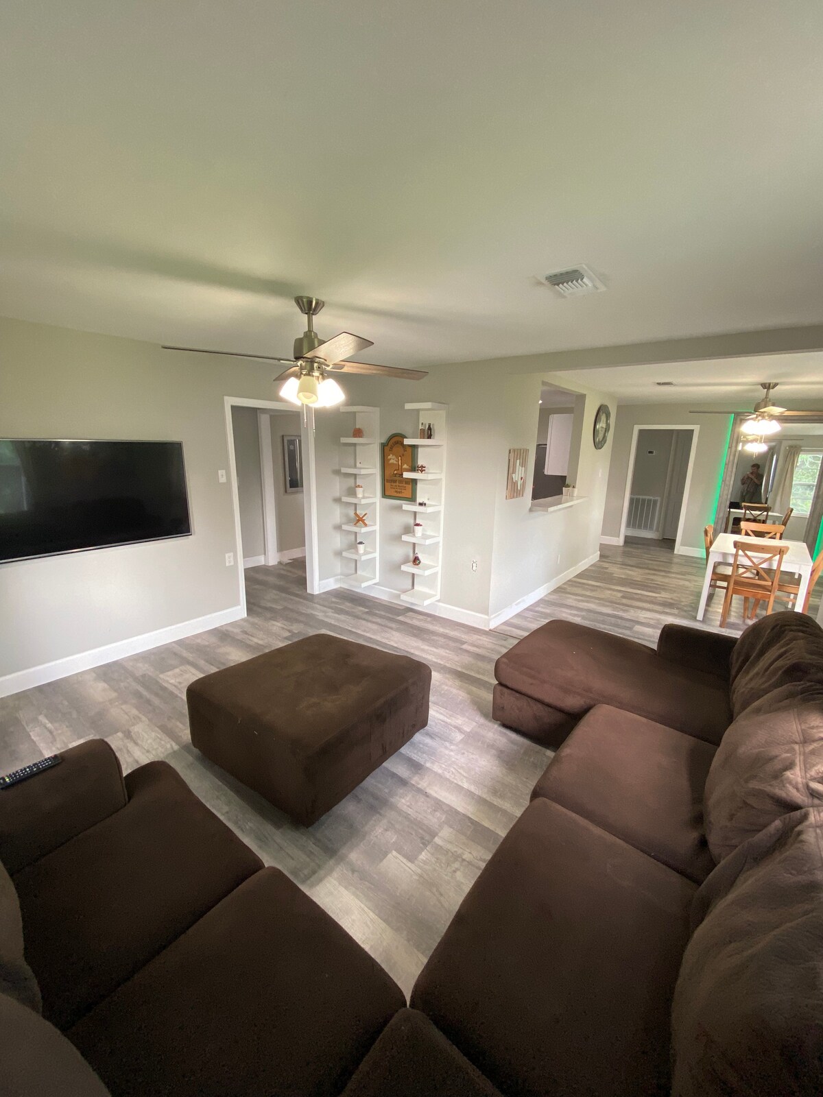 Notre retraite confortable offre des équipements de luxe : une baignoire, une toute nouvelle climatisation, une connexion Wi-Fi haut débit, une télévision Roku de 70 pouces, une cuisine de rêve de chef et un bureau indépendant. La maison est parfaitement située, à quelques kilomètres de l'I-45, vous pouvez donc vous rendre rapidement et facilement au nord jusqu'à Houston ou au sud jusqu'à Galveston. Le quartier propose des parcs, des étangs, des sentiers pédestres et un parc canin. C'est l'endroit idéal pour les croisiéristes au départ de Galveston ou les voyageurs qui veulent découvrir la région du Grand Houston.