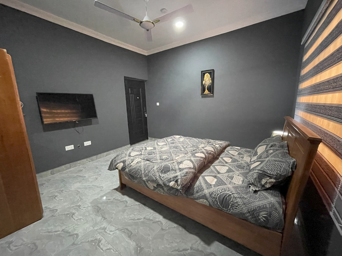 Profitez de chambres spacieuses, impeccablement propres et joliment meublées de 4 chambres nichées dans un environnement calme et serein, l'escapade parfaite ou un séjour de longue durée. avec une alimentation électrique ininterrompue 24 heures sur 24. -Wi-Fi gratuit Dstv Piscine privée Machine à laver Service en chambre Dans le cadre de notre hospitalité, nous offrons également un service gratuit de prise en charge et de retour à l'aéroport pour faciliter votre arrivée et votre départ. Réservez maintenant et découvrez le confort, la commodité et la classe !