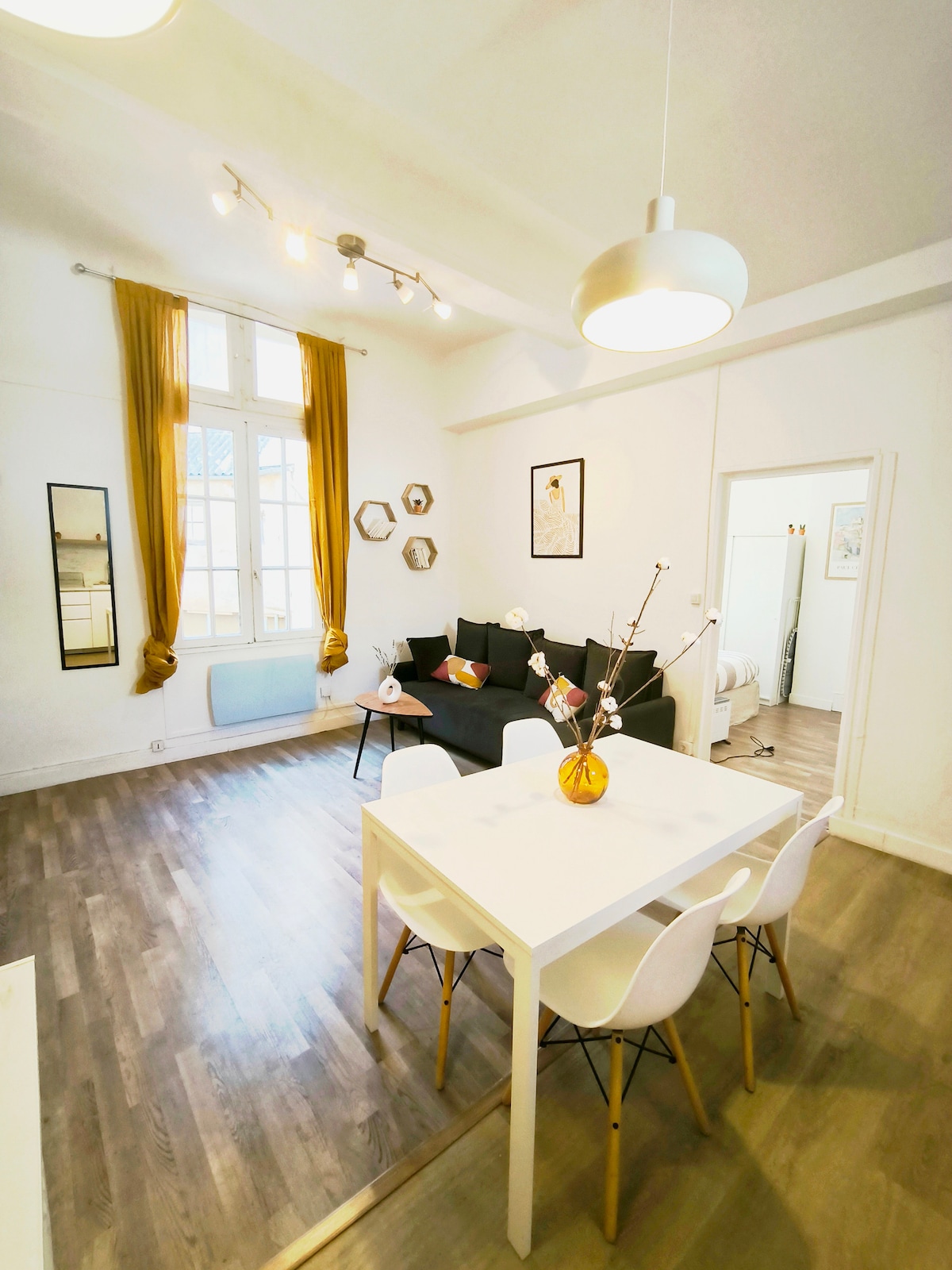 Appartement T3 DESIGN Calme et lumineux, entièrement refait à neuf. Au 2ème étage d'une petite résidence. Cuisine équipée, Wifi, linge de maison fourni ( draps, serviettes de toilettes). A disposition café, thé, pour le petit déjeuné et pour le repas les condiments. La situation géographique permet de circuler à pied dans le centre ville (boutiques, restaurants, ciné..) proche du parc Rambot, des restaurants, la mairie. Mon logement convient aux couples, aux voyageurs d'affaires et les familles
