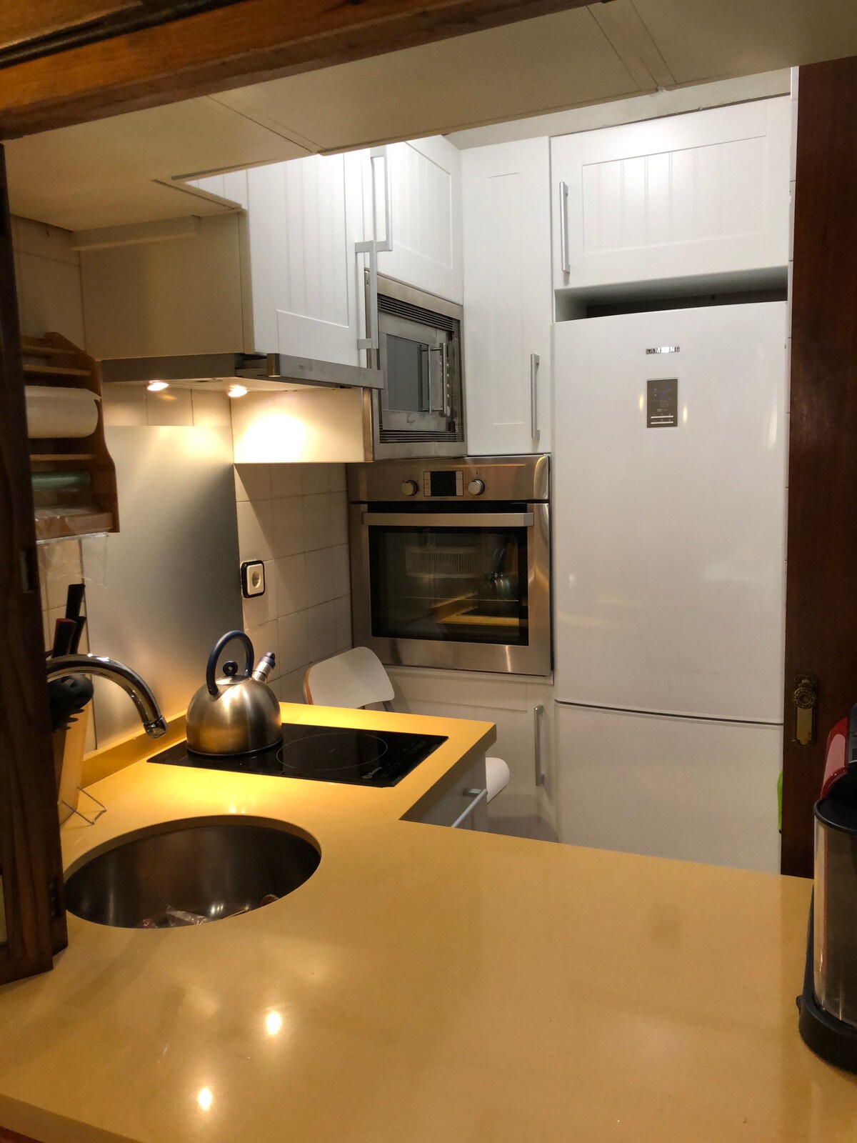 Notre appartement le plus lumineux et le plus ouvert, dispose d'un seul grand espace de type studio, équipé de la climatisation et de toutes les commodités que vous recherchez. À Altyn, vous trouverez une grande pièce divisée en trois environnements : espace salon, cuisine-salle à manger intégrée avec lave-vaisselle, four, micro-ondes et grand réfrigérateur et espace chambre double, dispose d'une salle de bains complète avec sèche-cheveux et d'une grande terrasse-solarium sur le toit de l'immeuble exposée au coucher du soleil.