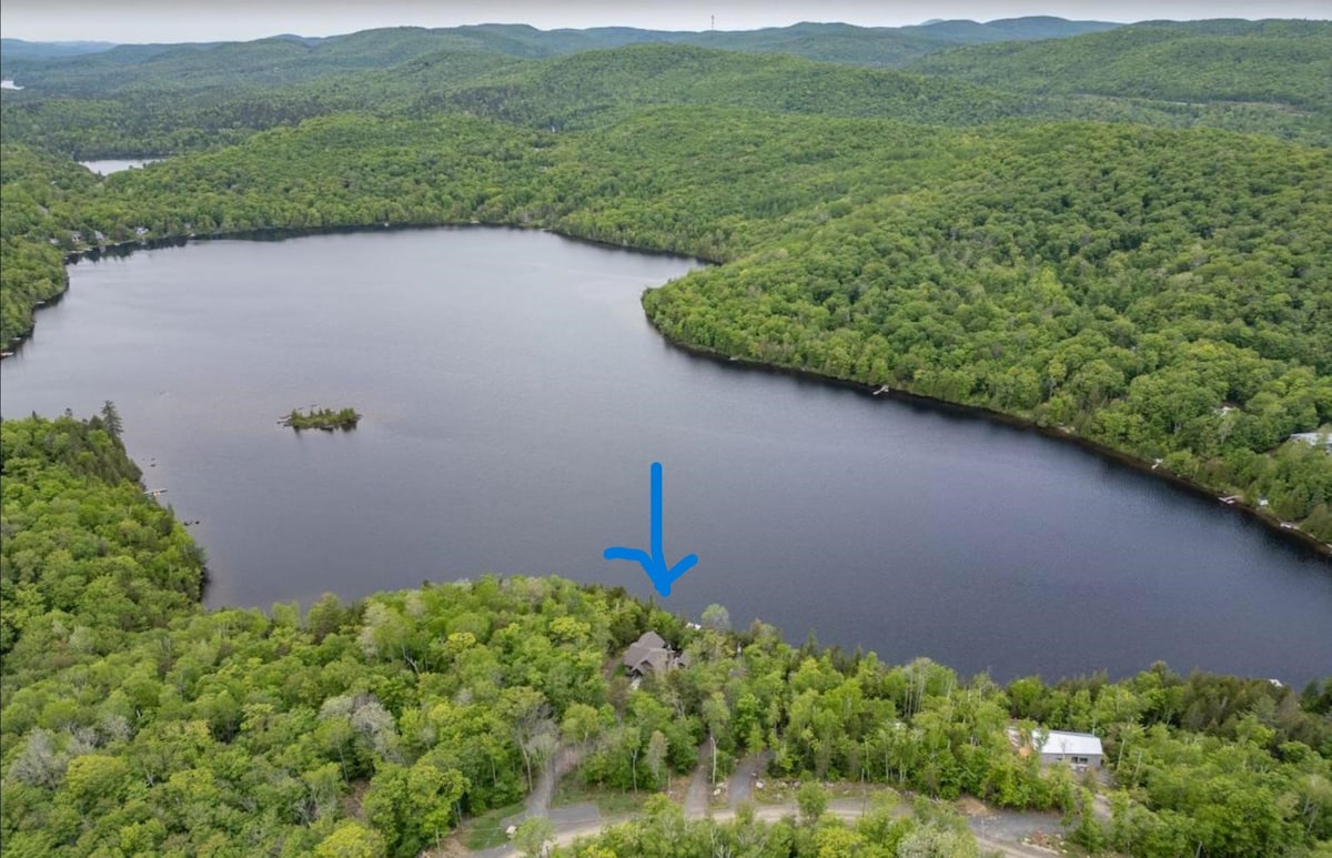 Magnifique petit chalet suisse surplombant un lac limpide et sans bateau à moteur. Chalet rustique, très chaleureux à l’odeur de bois et de forêt, directement au bord d'un magnifique lac immaculé, sans bateau à moteur, avec le chant des huards ! Votre immense quai privé, terrasse surplombant le lac, 2 kayaks, canot, pêche à la truite, foyer extérieur, BBQ, télévision intelligente et WiFi à données illimitées. À 5 min. de l’Estérel. Numéro d'établissement : 296337