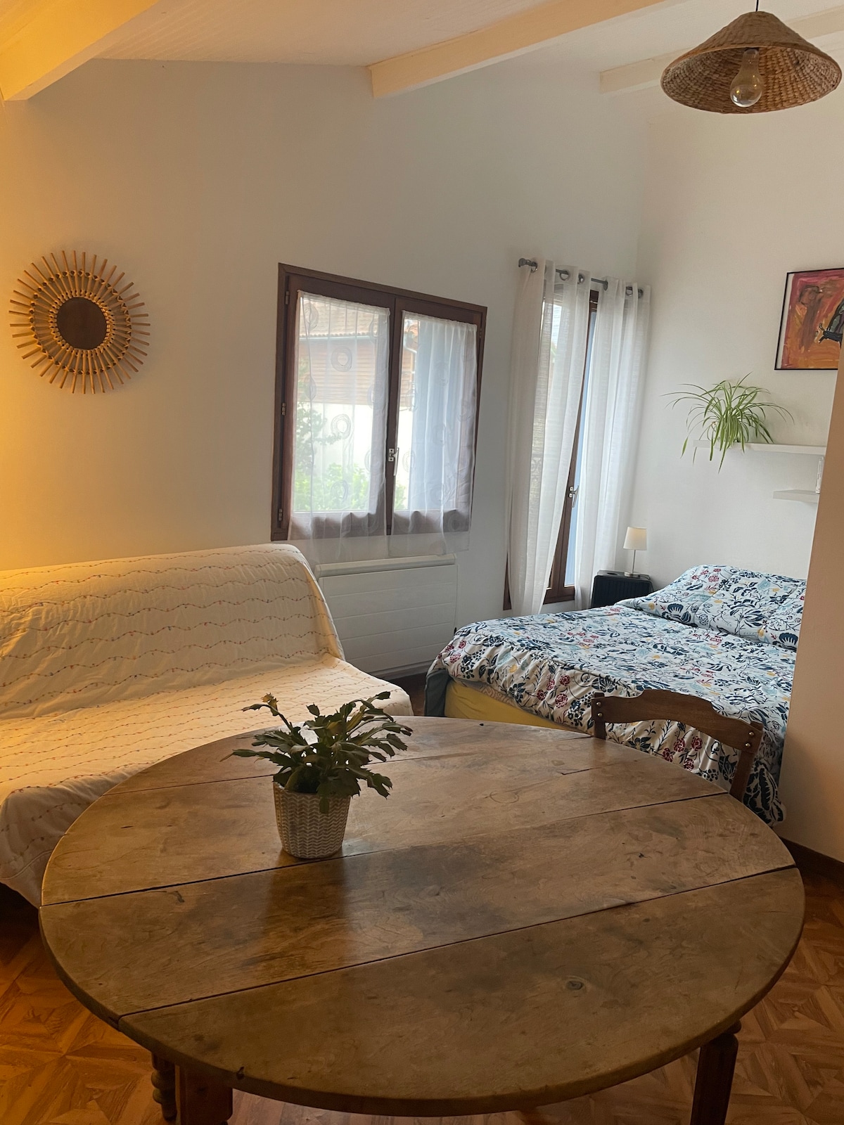 Studio charmant dans une impasse paisible et au calme, spécialement conçu pour un séjour confortable. Ce studio accolé à la maison dispose d’une pièce de vie qui comprend le lit, un espace bureau et un espace petit-déjeuner (pas de cuisine) équipé d’un frigo, d’une cafetière et d’une bouilloire. Vous disposez également d’une grande salle de bain attenante avec douche à l'italienne et WC. La literie de très bonne facture vous permettra de vous reposer en profitant de la TV et du WIFI.