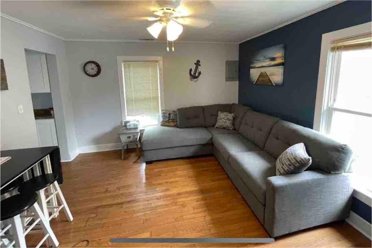 Détendez-vous et rechargez-vous cette saison au Sandusky Country Charm – Upstairs Unit, une retraite confortable 1BR en face de Memory Marina. Parfait pour une escapade tranquille ou un séjour hivernal plus long, avec un lit king size, un canapé-lit queen size, une cuisine complète, un lave-linge/sèche-linge et des téléviseurs intelligents Roku. Profitez d'un espace extérieur partagé avec foyer et barbecue. Jimmy Bukkett et la marina sont fermées pour la saison. Posez des questions sur les tarifs au mois pour les séjours prolongés de novembre à avril. Remarque : des escaliers extérieurs sont nécessaires pour accéder à l'étage