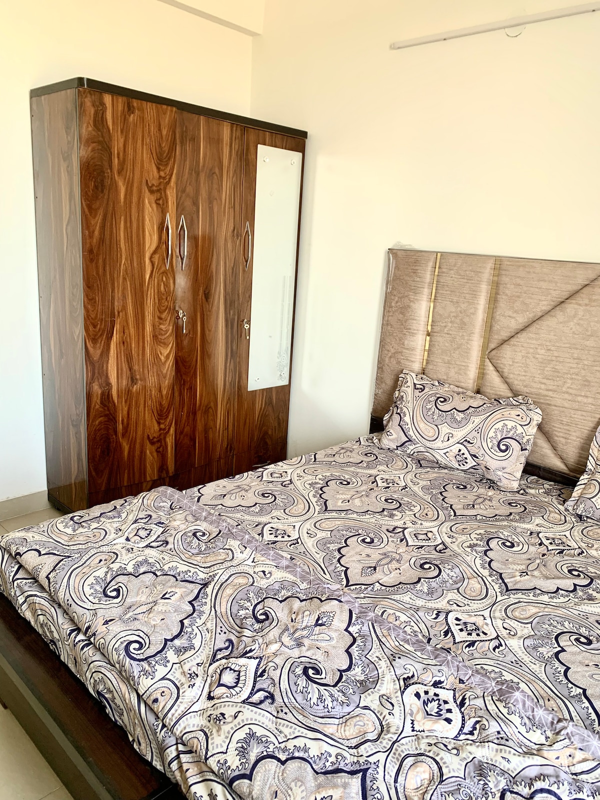 Bienvenue à Krishna Heights, un élégant appartement de 2 chambres et salon situé dans un gratte-ciel du secteur 32, Budha Khera, Karnal. Il offre des intérieurs modernes et un confort paisible dans un emplacement privilégié. L'appartement offre des chambres spacieuses, un coin salon confortable, une cuisine entièrement équipée et un balcon parfait pour le café du matin. Avec le Wi-Fi haut débit, la climatisation et un accès facile aux restaurants et aux autoroutes, il est idéal pour les familles, les couples, les professionnels et les voyageurs. Découvrez la chaleur, l'élégance et le calme de Krishna Heights.