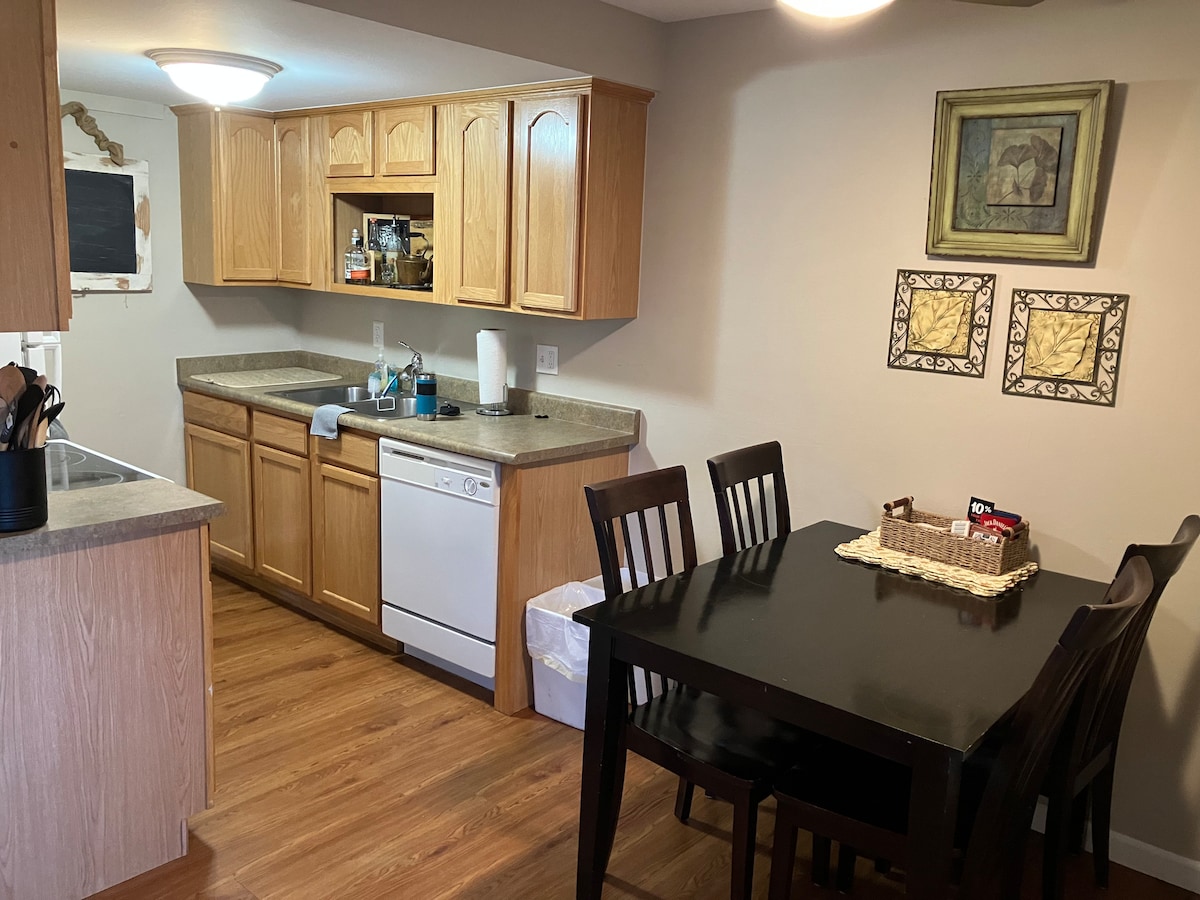 Cette suite au sous-sol de 600 pieds carrés dispose de fenêtres dans les deux chambres et dans la salle familiale. Il est entièrement privé du reste de la maison et comprend 2 chambres, une salle familiale avec bar, grille-pain, cafetière, 2 petits réfrigérateurs et une salle de bain privée avec jacuzzi. Il y a aussi une télévision de 51" et un accès Internet sans fil. Nous accueillons tous les âges, y compris les nourrissons (nous avons même un parc pour bébé !) et toutes les ethnies. De plus, nous accordons des remboursements pour les vols annulés !