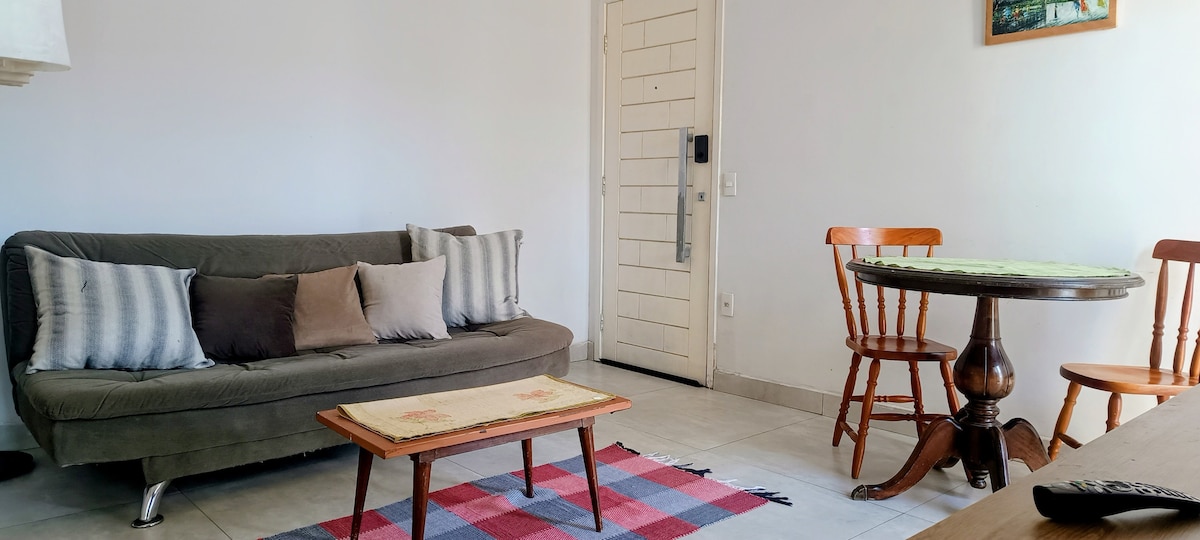 Appartement dans une communauté fermée – Idéal pour ceux qui recherchent un environnement calme. Sécurité 24 heures sur 24. Arrivée flexible avec serrure électronique. Accueille confortablement 3 personnes, et une 4e avec l'utilisation du canapé-lit. 1 chambre double et 1 lit simple avec rideaux occultants. Télévision connectée de 60" Wi-Fi 2.4 et 5G, selon la compatibilité de votre appareil. Cuisine entièrement équipée, fer à repasser, appareil à sandwich, mixeur. Machine à laver. Espace extérieur : aire de jeux, amusante pour les enfants.