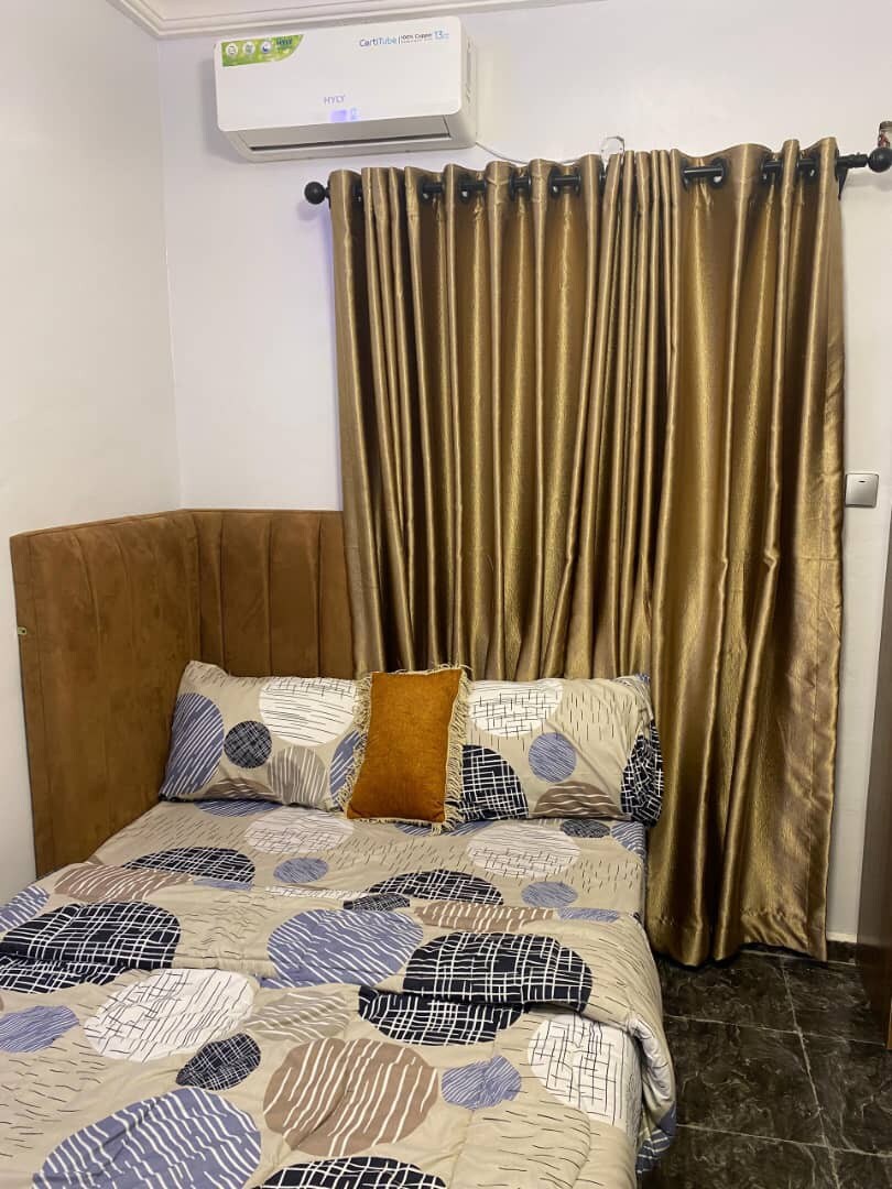 Appartement dans la Silicon Valley de la vallée de la Yabacon Valley du Nigeria. Idéal pour les nomades numériques avec une vitesse Internet mtn de plus de 100 Mbit/s dans la cuisine et la sécheuse, une électricité tarifaire 24h/24 avec un réfrigérateur onduleur et un four à micro-ondes et un four. Télévision connectée et un joli lit moelleux contrairement aux lits orthodpédiques durs qui se trouvent normalement dans les hôtels et appartements nigérians