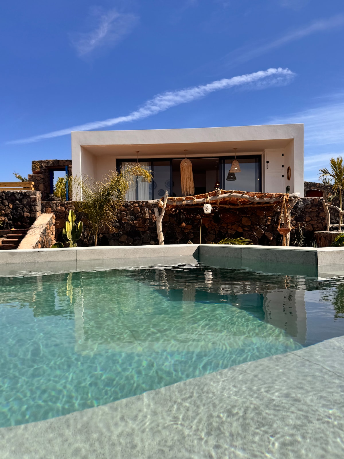 EL NAWAL a été créé à la recherche de l'harmonie entre l'art et la nature. 2 belles petites maisons, aux lignes courbes, aux murs en pierre authentiques faits à la main, à la végétation, aux piscines salines, aux matériaux recyclés et à une touche arabe, nous rappelle le travail de notre architecte préféré, Cesar Manrique. Chaque élément a été choisi avec beaucoup de soin. L'endroit parfait avec tous les détails de luxe pour se connecter avec ce qui compte vraiment, le bien-être.