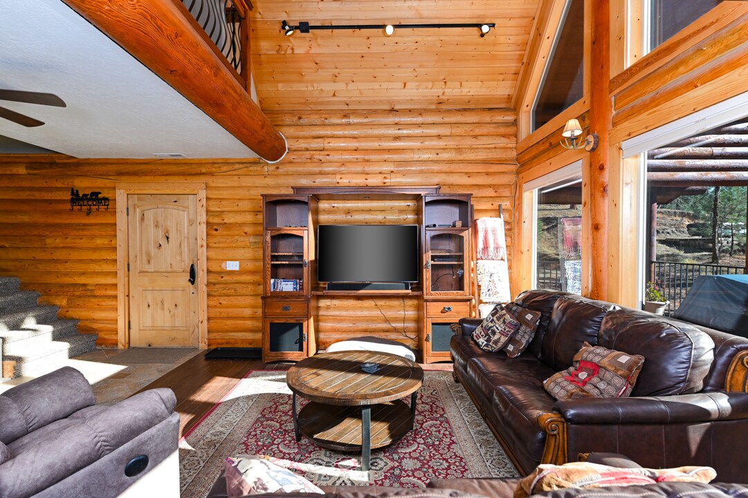 Évadez-vous et détendez-vous en famille dans cette cabane en rondins paisible, entièrement équipée et authentique. Peut accueillir confortablement 10 personnes, dispose d'une incroyable salle de jeux/arcade pour divertir les enfants (et les adultes !) pendant des heures, et d'un espace de jeu rempli de jouets/jeux/puzzles pour les plus petits. Jouez au cornhole et détendez-vous au coin du feu. Beaucoup d'espace pour ranger les skis et le matériel de ski dans le garage, grand parking pour les remorques jouets à l'extérieur. Propriété au bord d'un ruisseau nichée sur des routes pavées et bien entretenues avec un excellent accès en hiver.