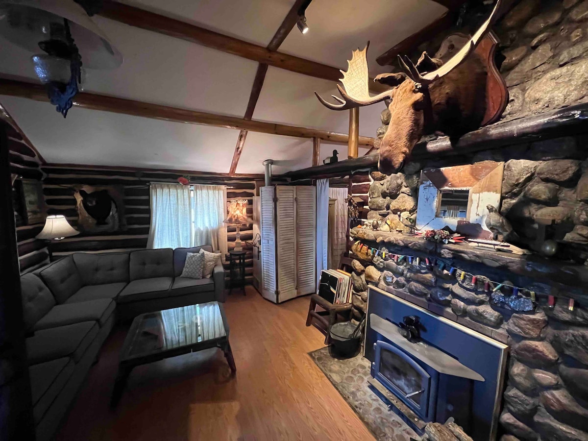 Dès que vous ouvrez la porte de 100 lb avec une poignée en fer, vous pouvez sentir l'héritage que cette maison contient. Les armoires à bois, les racines des tiroirs, le Jackalope; cette maison pittoresque a tout pour plaire. Aménagé avec goût avec des antiquités de notre propre famille, vous avez une idée de ce qu'était la vie il y a près de 100 ans. Allumez le feu dans la grande cheminée en pierre, admirez le silence, pas de lac motorisé, et détendez-vous avec votre musique préférée sur le son. Idéalement situé à proximité des épiceries et des fournitures de pêche