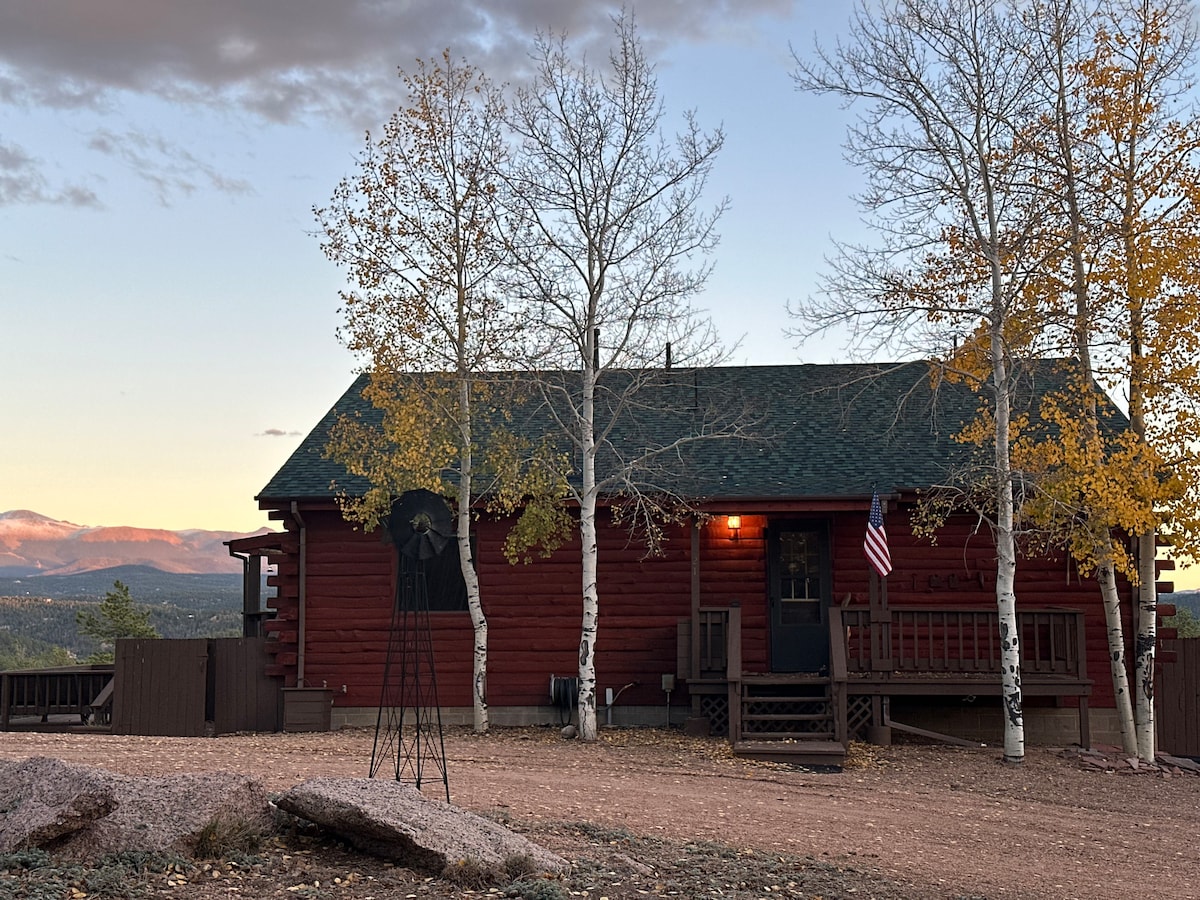 Cabane en rondins de montagne avec vue sur Pikes Peak