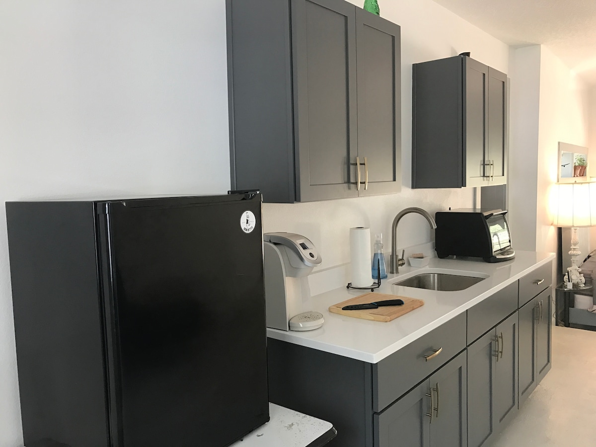 Notre studio accepte les animaux de compagnie et peut accueillir confortablement 4 personnes. À 5 minutes du centre-ville et à seulement 30 minutes de Daytona Beach. Profitez des œufs frais de nos poules le matin avant de vous diriger vers les Springs pour une baignade fraîche ou l'observation des lamantins à seulement 10 minutes. Cuisine complète, lit Queen Size et futon. Cuisine de chef récemment rénovée.