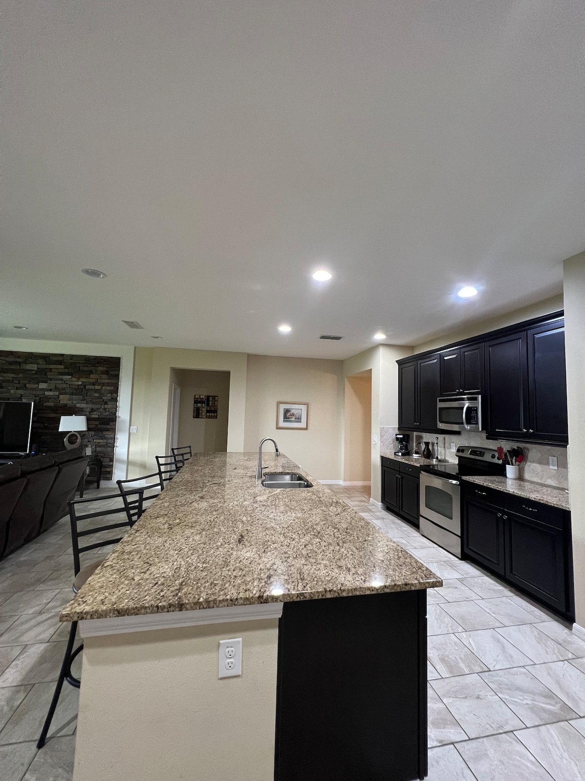 Villa moderne récemment rénovée de 3 lits/2 salles de bain, maison confortable nichée parmi de beaux chênes et à proximité du centre-ville de Clermont, du centre national d'entraînement, et à 35 minutes de Disney World et d'autres attractions majeures. La maison dispose de lits doux et confortables, dont un lit King Size, un lit Queen Size et deux lits jumeaux, tous avec des surmatelas en mousse à mémoire de forme de 3". La cuisine est entièrement approvisionnée avec des épices, une station café/thé, un mixeur et une mijoteuse. La salle de jeux située dans le garage est équipée de baby-foot et de hockey sur table.