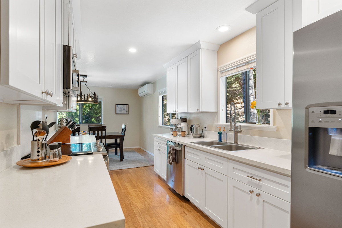 Détendez-vous dans notre escapade paisible nichée dans les pins du nord de Dunsmuir. Profitez de votre séjour dans cette confortable maison de 3 chambres et 2 salles de bain, très proche de la station de ski Shasta Ski Resort, et plusieurs cascades bien connues. Cette maison a récemment été entièrement rénovée, avec un nouveau jacuzzi Hot Springs. Cette maison offre un lit Cal King dans la chambre à l'étage, des lits Queen Size dans chacune des 2 chambres en bas, et un lit Queen Size pliant supplémentaire si nécessaire. Excellent emplacement dans le meilleur quartier de la ville !