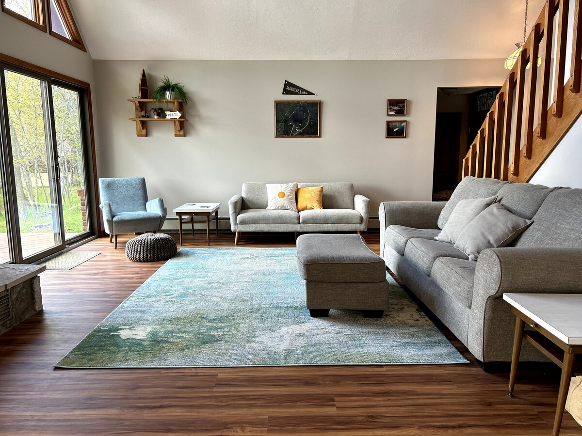 Escape to your private hot tub retreat at our lakeside sanctuary at this unforgettable Big Bass Lake cottage. Watch the snow fall while soaking your cares away in our Hot Springs hot tub under our covered gazebo or enjoy a crackling fire in our outdoor firepit with stunning views of the lake. Our spacious home accommodates 10 guests and boasts a sprawling living room with panoramic lake views. Fully equipped kitchen, high speed wi-fi, smart TVs, Xumo streaming boxes and shuffleboard.