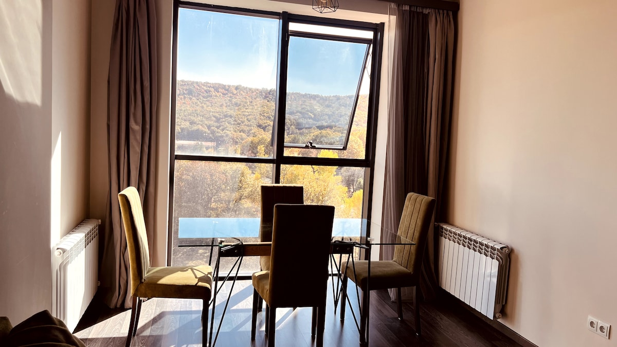 Welcome to Dilijan! Enjoy the pure air, beautiful nature, and a relaxing atmosphere. Comfort House Apartments are located in the very heart of Dilijan, in a prestigious district. The modern 9-story building is considered one of the best in town. Guests benefit from private parking, free Wi-Fi, a children’s playground, and 24/7 security with video surveillance, ensuring safety and comfort during your stay.