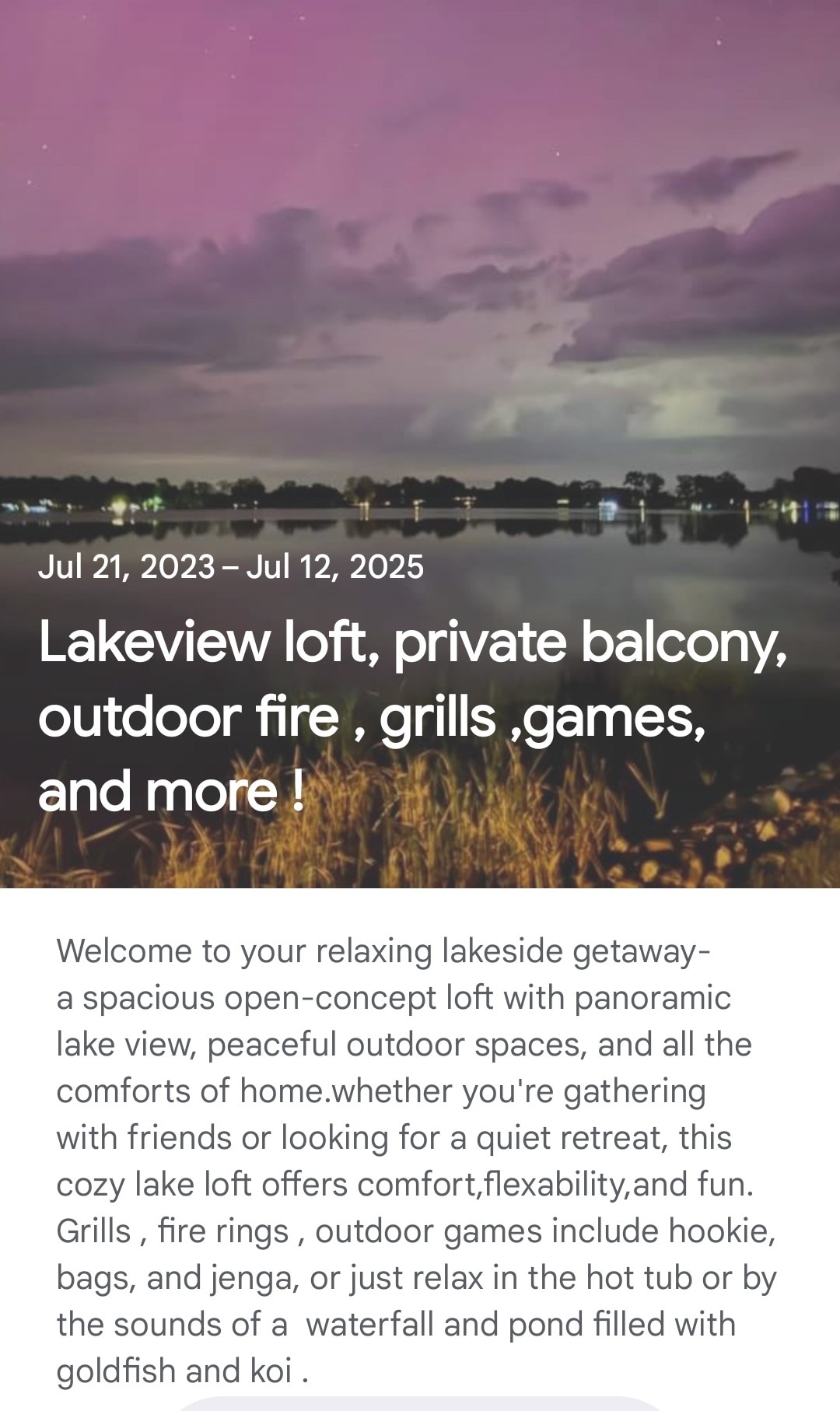 Bienvenue dans votre retraite au bord du lac ! Ce joyau de 2 chambres et 2 salles de bain récemment rénové offre un confort moderne et une vue imprenable sur le lac. Espace de vie spacieux inondé de lumière naturelle, cuisine entièrement équipée pour une préparation facile des repas et coin repas avec vue imprenable. Les deux chambres disposent de draps confortables et de literie moelleuse, assurant une nuit de sommeil tranquille. Accès direct au lac pour la baignade, la pêche ou pour se prélasser au soleil sur le quai privé. Un lit pliant peut être installé dans n'importe quelle chambre et un matelas gonflable queen size est disponible.