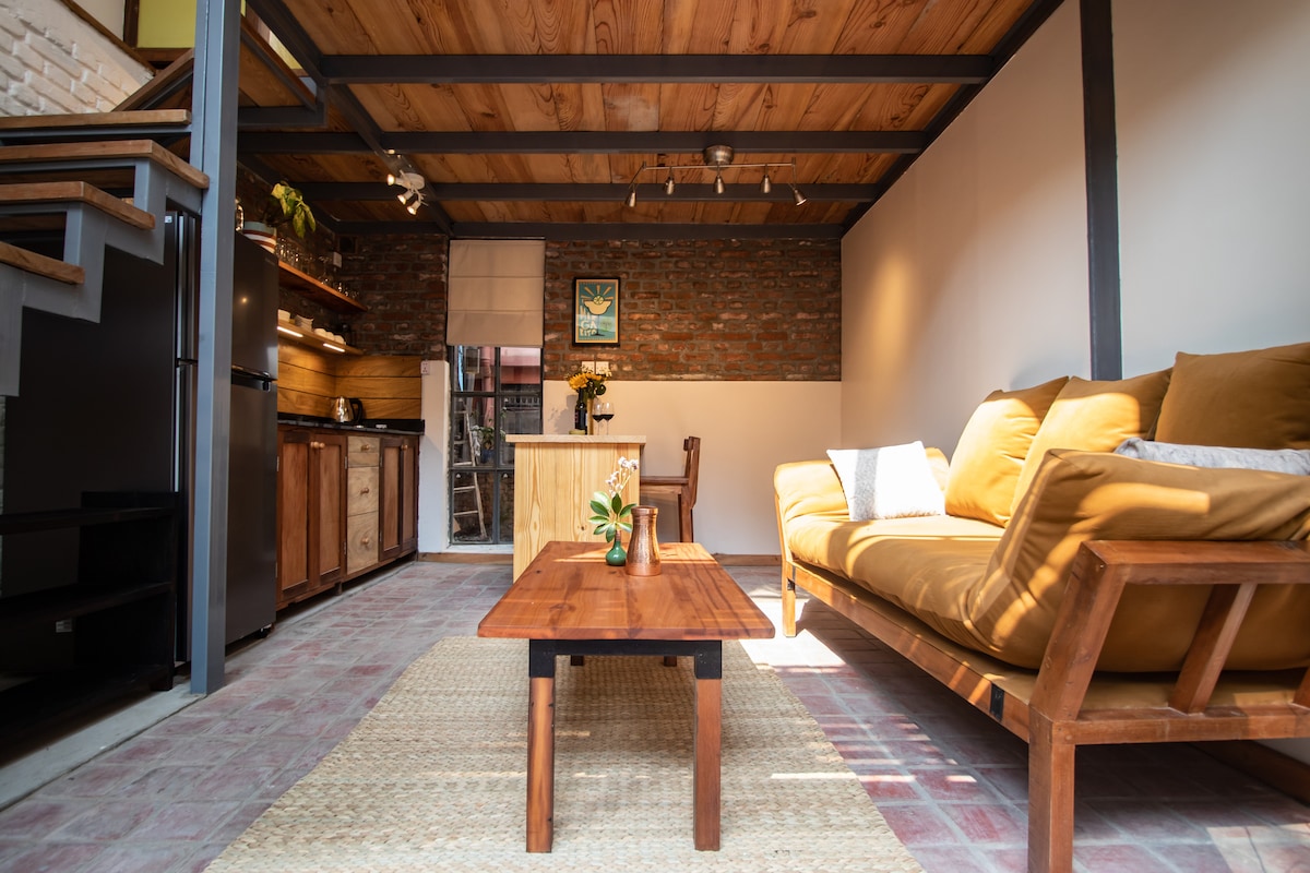 Tucked within an expanded structure but completely independent from the main building. It is a unique, eco-conscious stay built entirely from upcycled materials. It's separate from the main building and offers a calm, thoughtful design. Consists a well-equipped kitchen, a small private garden, and a connected unit with living room, bedroom, and bathroom. Guests also have access to the main building's gorgeous rooftop, which features stunning views on clear days, a small kitchen, and sitting area