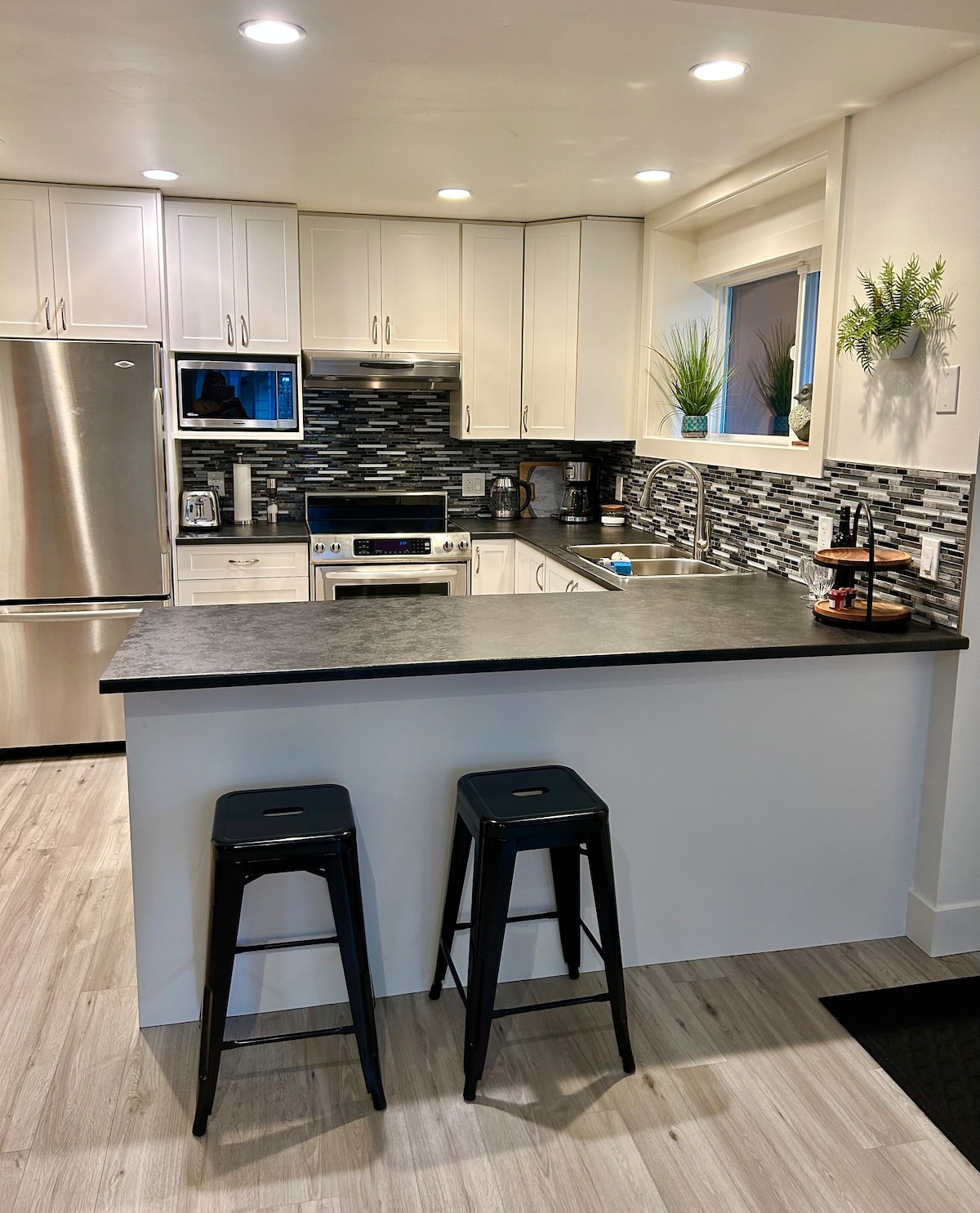 Le Hilltop Hideaway a été construit avec amour en 2023 par les hôtes nouvellement mariés, Jake et Fran. En mettant l'accent sur des finitions de qualité et des détails modernes, l'espace dégage une sensation luxueuse et charmante. Avec 2 chambres, 1,5 salles de bains et un espace de vie ouvert, c'est l'endroit idéal pour se détendre et se connecter avec des partenaires de voyage ! J&F ont mis l'accent sur les divertissements en plein air avec une immense terrasse couverte, un patio avec table de pique-nique et l'accès à un sauna en baril de cèdre ! Que vous veniez de près ou de loin, vous le méritez !