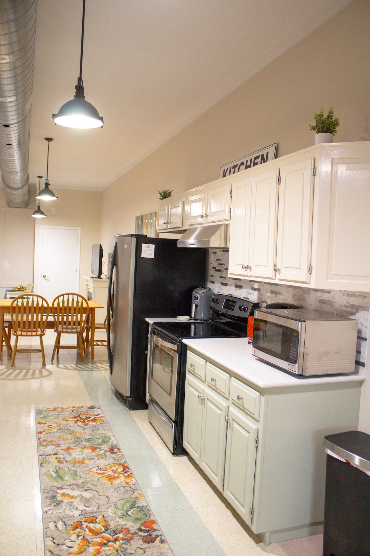 Le loft avant dispose d'une chambre, d'une cuisine complète, d'une douche à l'italienne, d'un dressing, d'un salon avec un grand lit mural, d'une grande table à manger, d'un bar pour le petit-déjeuner et d'une vue magnifique sur le palais de justice Marshall. Ce bâtiment de 1882 a été entièrement rénové. Le loft se trouve au deuxième étage et n'est accessible que par des escaliers. Les lofts sont au-dessus de l'un des plus anciens espaces de vente au détail de Marshall qui abrite aujourd'hui le salon du palais de justice.