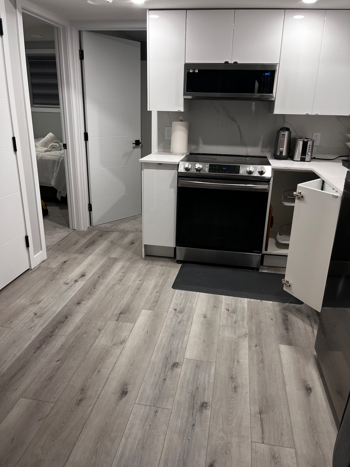 Détendez-vous en famille dans cette suite confortable d'une chambre située dans un quartier exclusivement calme. La suite dispose d'un lit Queen Size et peut accueillir 2 personnes. Notre cuisine est bien équipée avec des appareils électroménagers haut de gamme. Le stationnement et la buanderie sont gratuits et sur place. Accès facile au centre-ville et à quelques minutes de l'Henday permettant un accès facile à n'importe où en ville. Le centre commercial Londonderry, les restaurants, les restaurants à service rapide, les cafés, les épiceries et les cinémas sont tous à quelques minutes de route.