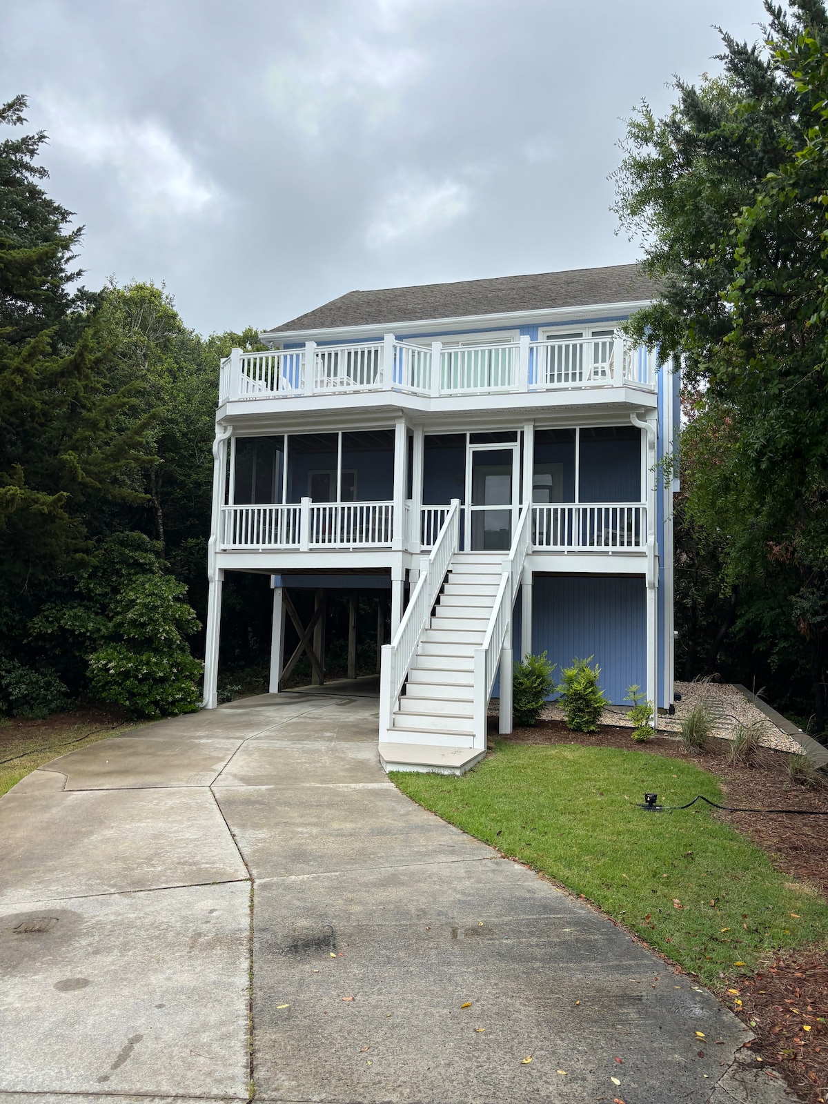 Le paradis vous attend sur la magnifique île d'Émeraude, en Caroline du Nord. Profitez des couchers de soleil, de la vue sur l'eau et de l'habitat naturel de ce domaine de 2 acres situé sur Bogue Sound. L'océan Atlantique se trouve à seulement quelques minutes avec plusieurs accès à la plage au choix. Restaurants, bars et magasins sont à quelques minutes à vélo via la piste cyclable d'Emerald Isle (vélos fournis sur demande). Détendez-vous sur le patio avec votre café du matin ou un verre le soir.