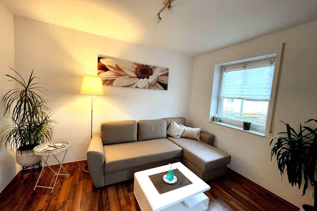Appartement moderne, lumineux, élégamment meublé, 1 chambre avec salle de bains et balcon orienté au sud, se trouve au 1er étage de notre maison. Il se trouve à environ 1 km du lac de Constance. Promenade au bord du lac, commerces, cafés et restaurants à proximité. Dans le village, tout est accessible à pied ou à vélo. A pied : Gare 8 min. Boulangerie pour le petit déjeuner 10 min. Norma 5 min. Plage naturelle qui invite à la baignade 15 min. Visite de la foire en voiture 10 min. Location de vélos possible sur place