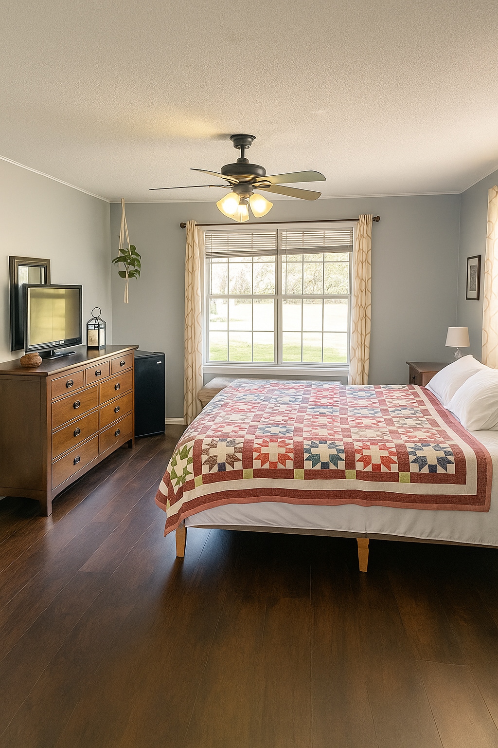 Relax at our peaceful country home, just 5 mins from Lakeland, GA, and 15-20 mins from Moody Air Force Base. Your private room features a King bed, mini-fridge, TV, and private bath with a separate entrance. Enjoy shared spaces like the kitchen and living room, or join us for a simple vegetarian meal. We’re a multicultural family with kids, pets, and a retired professor of neuroscience who loves engaging in conversation. Enjoy coffee on the porch or a walk down our scenic road.