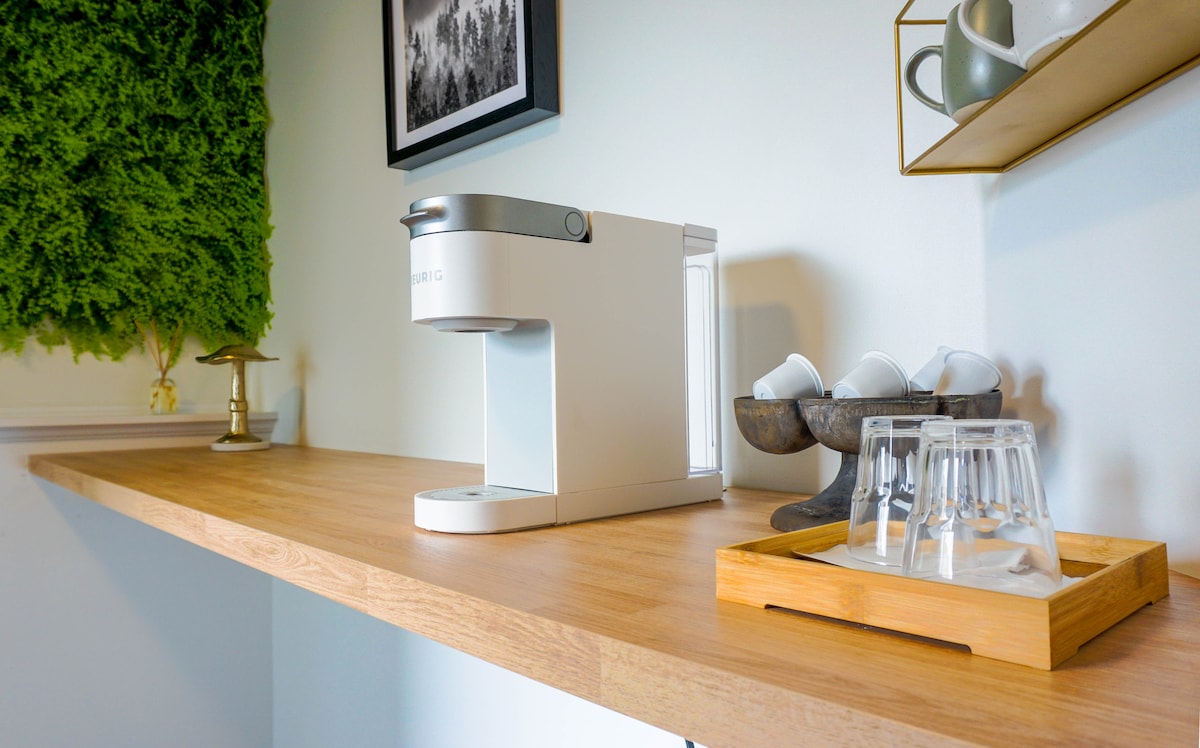Notre suite est une superbe retraite d'une chambre nouvellement construite, avec un plafond de 9' et un espace généreux de 810 pieds carrés. Elle dispose d'une télévision connectée de 58" et d'une cuisine entièrement équipée, assurant un style de vie de haute qualité pendant vos voyages. Admirez le lever et le coucher du soleil à couper le souffle depuis votre balcon privé, avec une vue magnifique sur l'océan et les montagnes de l'autre côté du détroit de Georgia. Idéalement située, notre suite est une base idéale pour découvrir l'attrait de l'île de Vancouver.