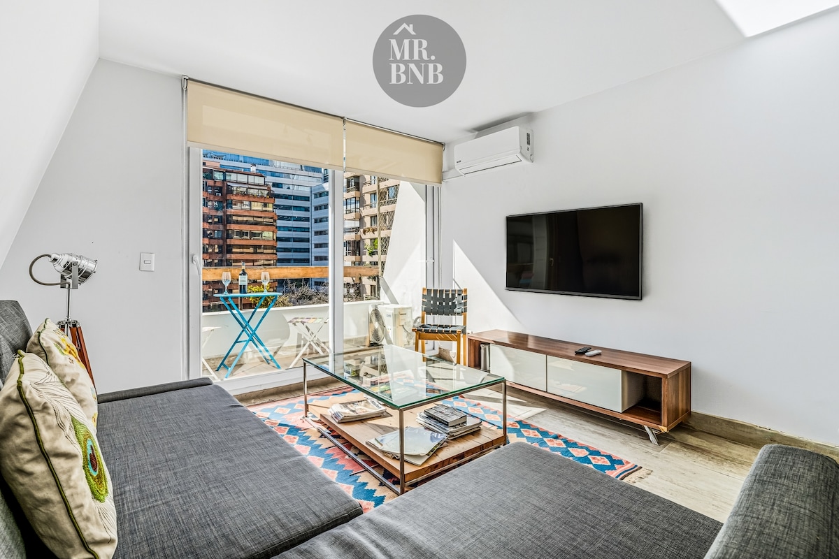 C'est un appartement spacieux avec cuisine indépendante, salle de bain, salon-salle à manger, une chambre et deux grandes terrasses privées . Meublé et décoré en pensant à l'élégance et au confort des clients. Situé dans un quartier calme et privilégié dans la commune de providence, à moins de deux pâtés de maisons de la station de métro Los Leones et à seulement un pâté de maisons de l'avenue providence. Proche des commerces de différents types et de l'emblématique mall Costanera Center et du belvédère Sky Costanera.
