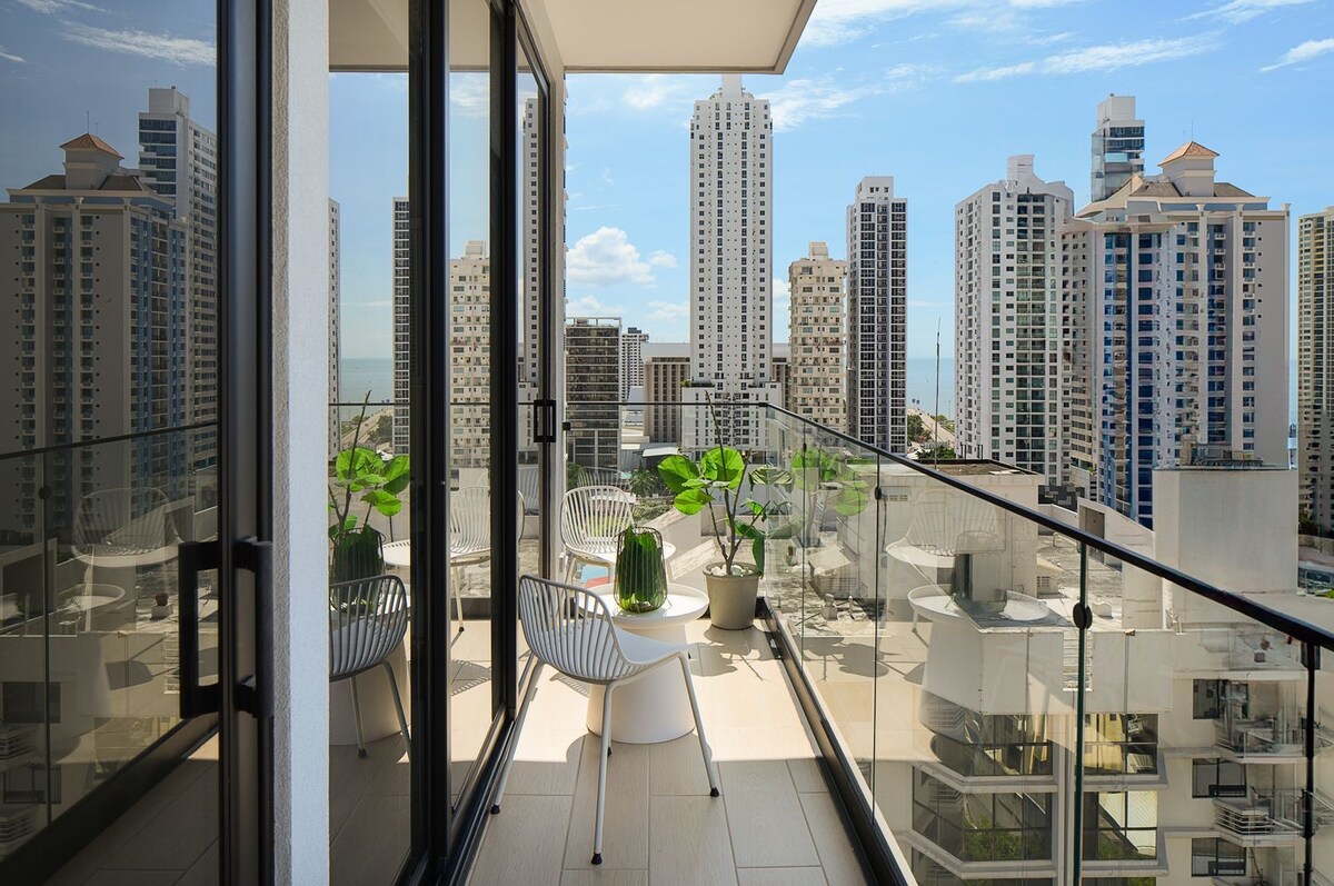 Appartement ➤ lumineux ✨ et joliment décoré avec vue sur l'océan🌅, un balcon privé et un emplacement imbattable📍. 🚶🏻🚶🏻♀️À 5-10 minutes à pied des restaurants, des supermarchés, du centre commercial Multiplaza, des cafés 🧑🏻💻 Idéal pour les télétravailleurs , les ordinateurs de bureau, la vitesse Internet de 750 Mo, le débit de 100 Mo. Escape ➤ Urban : incontournables du bâtiment : ★ Salle de sport. ★ 2 espaces de coworking avec une vitesse Internet de 500 Mo. ★ Piscine sur le toit-terrasse. ➤ Situé à San Francisco, Panama City | Rooftop Pool | Explorez la ville facilement | Uber-Friendly